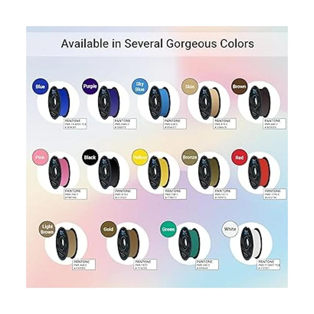 Filamento PETG fuerte Bobinado limpio y fórmula mejorada Peso neto: carrete de 2.2 libras. 14 colores: azul, morado, azul cielo, piel, naranja, marrón, rosa, negro, amarillo, bronce, rojo, marrón claro, dorado, verde y blanco. Nuestros nuevos filamentos PETG 3D 1.75 tienen una fórmula avanzada que mejora la unión de capas, pureza, menos encogimiento. Proporciona un excelente acabado de superficie de PET para tus artes y manualidades, bricolaje, decoración, festivales, estructura 3D o todos los proyectos de impresión 3D para objetos pequeños o grandes.