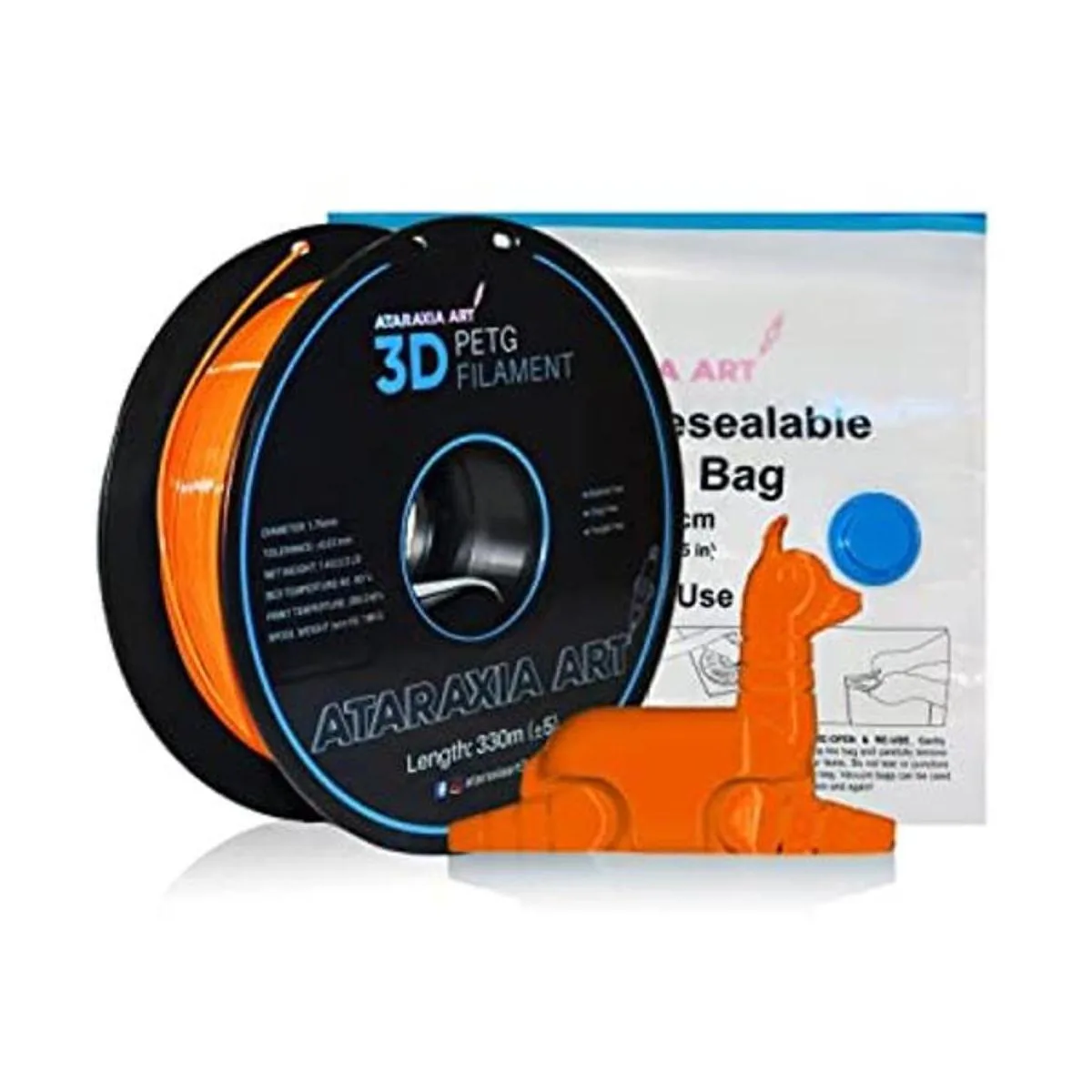 Ataraxia Art Filamento PETG de 0.069 in, filamento de impresora 3D, carrete de bobina ordenada de 2.2 lbs, precisión dimensional 0.001 in, con bolsa de vacío de almacenamiento de filamentos, se adapta a la mayoría de impresoras 3D FDM, combinación Pantone, naranja PETG