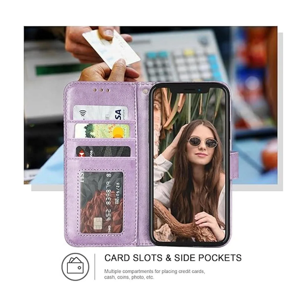 Protección completa: protege tu teléfono contra el polvo, arañazos, impactos y otros daños no deseados. La funda tipo cartera proporciona protección adicional para la pantalla de tu teléfono.