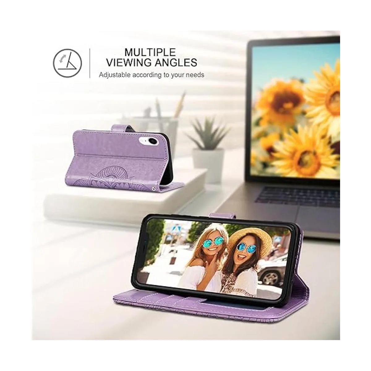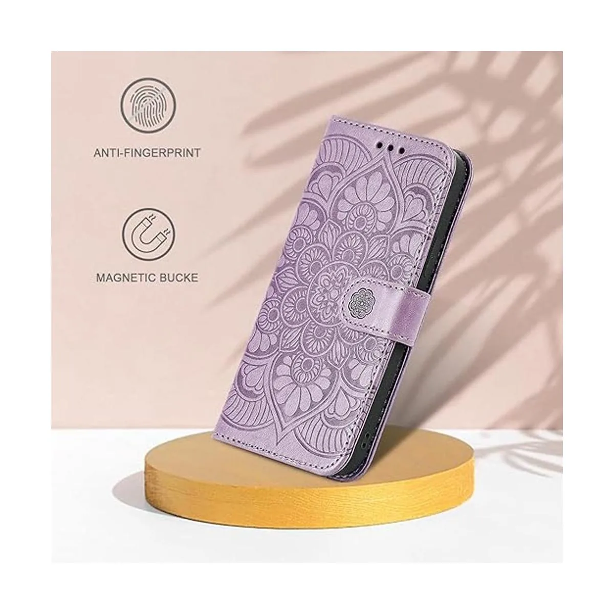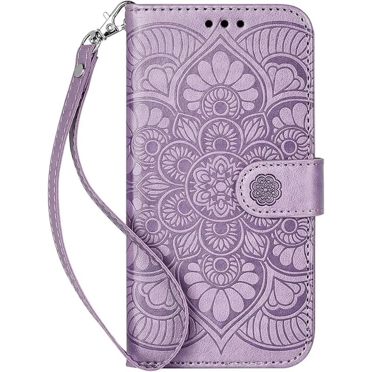 Ateeky Funda tipo cartera para iPhone XR, patrón de flores de mandala, función de soporte Funda protectora de piel sintética con ranura para tarjeta de crédito, bolsillo lateral para efectivo, cierre magnético, morado
