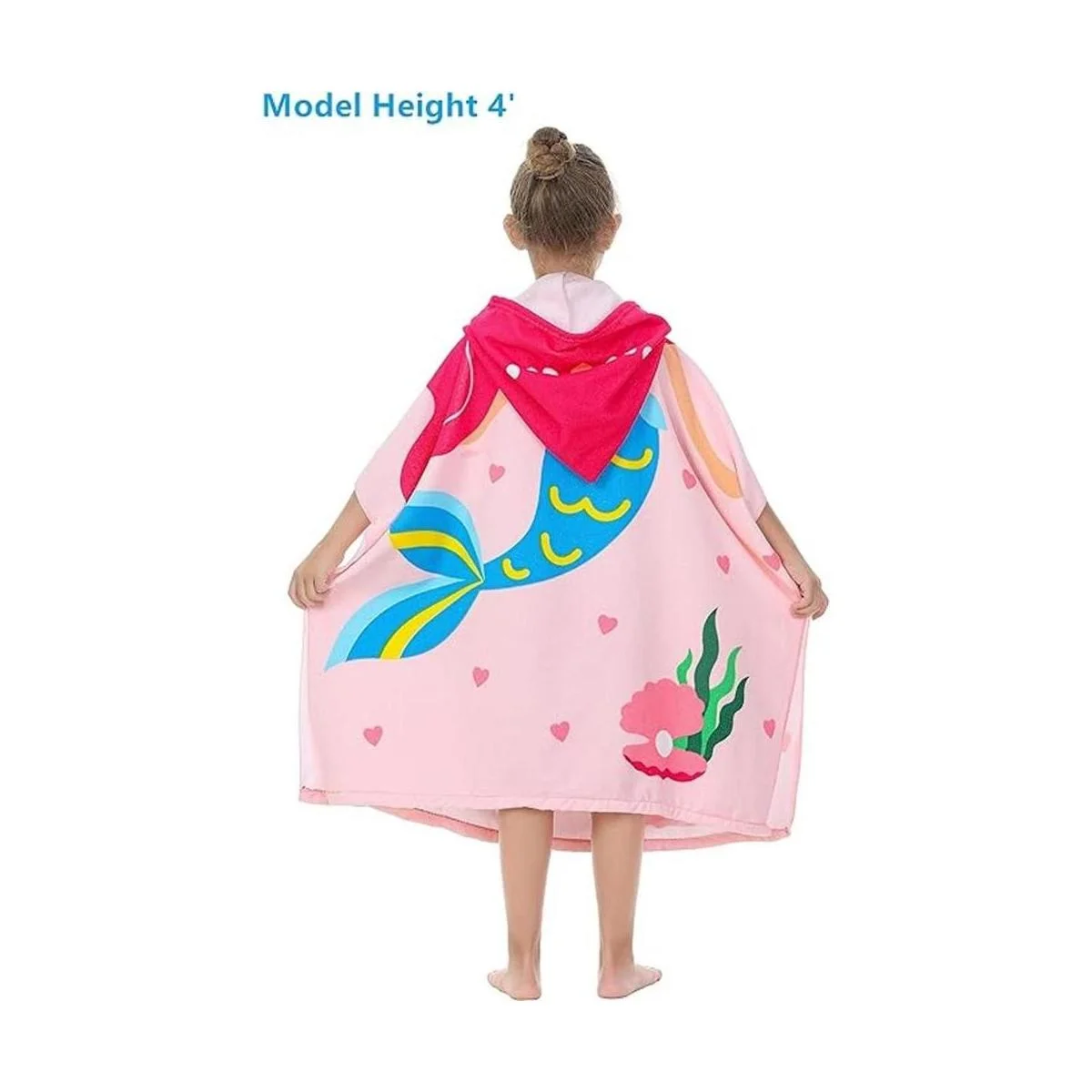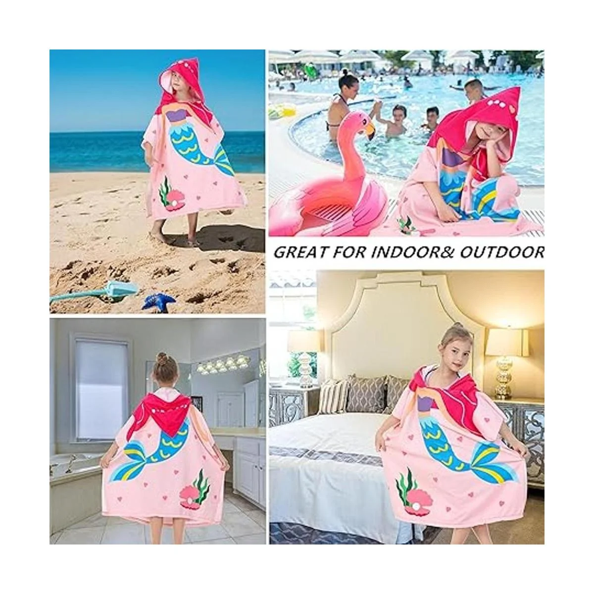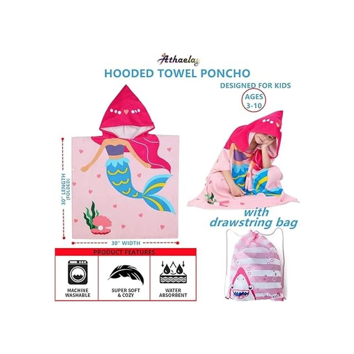Athaelay Toallas de baño de microfibra suave para niños de 3 a 10 años con capucha y bolsa portátil sirena rosa, se adapta a 3 a 10 años