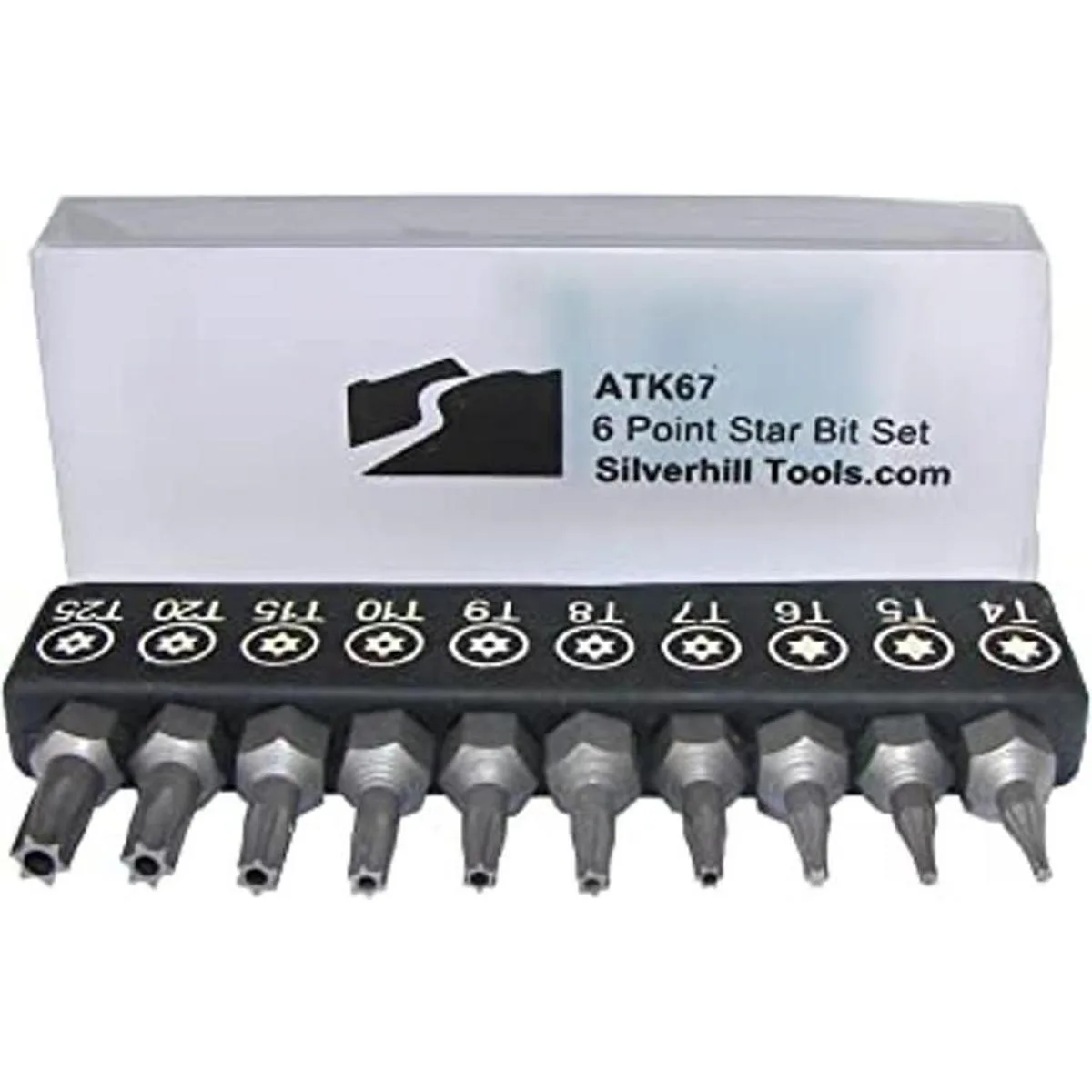 ATK67 Juego brocas de seguridad de estrella de 6 puntas estilo Torx TR con pin en el hoyo, para mango de desarmador para brocas de 14 de pulgada. Tamaños T4, T5, T6, T7, T8, T9, T10, T15, T20, T25.
