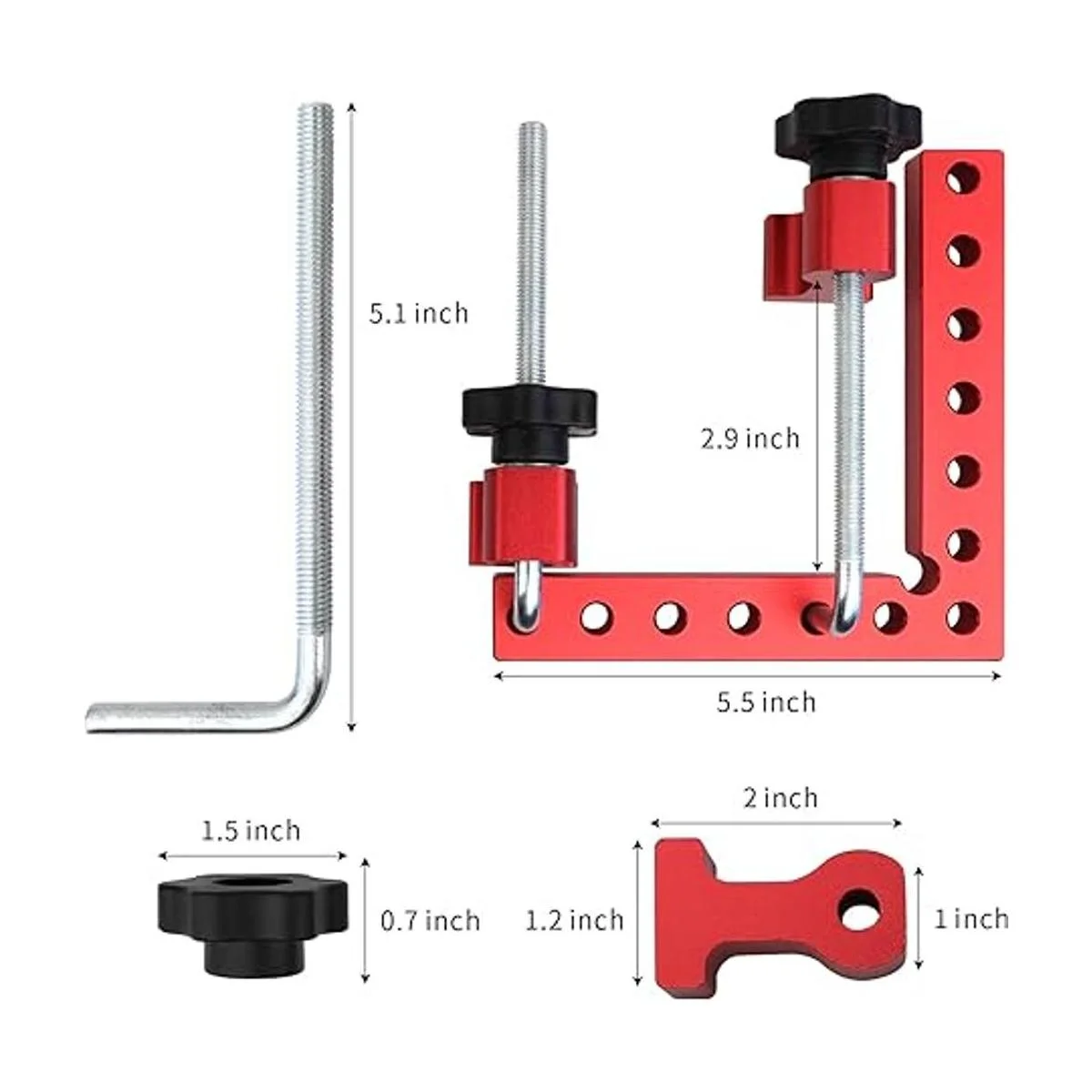 ATOLS Cuadros de posicionamiento de 90 grados, 4 abrazaderas de ángulo recto de 5.5 pulgadas con 8 abrazaderas, abrazadera de esquina de aleación de aluminio, herramienta de sujeción de carpintero para marcos de fotos, cajas, armarios o cajones