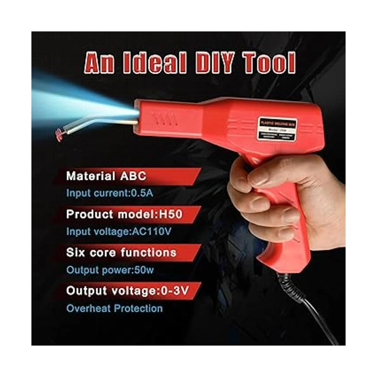 ATOLS Máquina de soldadura de plástico, kit de reparación de parachoques de automóvil, máquina de soldadura de plástico, kit de reparación de plástico de grapadora caliente de 50 W, kit de reparación de grietas de parachoques de automóvil, con alicates y 4 tipos de grapas planas de onda caliente