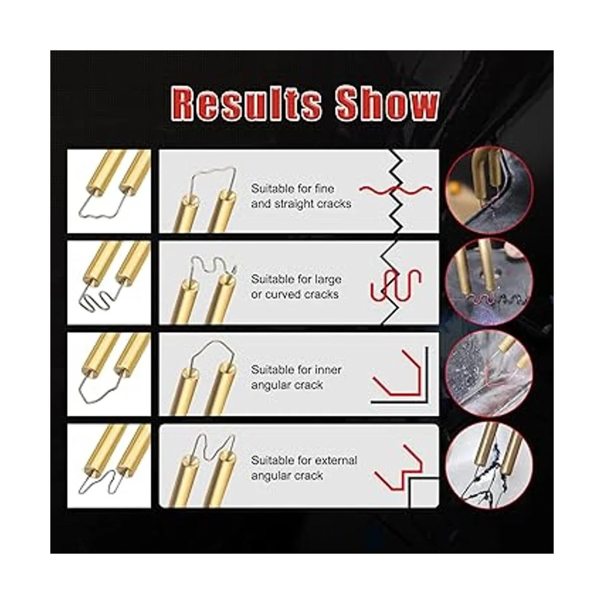 Calidad fiable: la grapa de acero inoxidable no se oxida y 4 tipos de grapas para satisfacer tus diferentes necesidades. El diseño de grapas onduladas maximiza la carga. Restaura tus piezas rotas, prolonga su vida útil. Grapa la soldadura en los plásticos rápida y fácilmente. Fuerte para golpes y torsión después de la reparación.