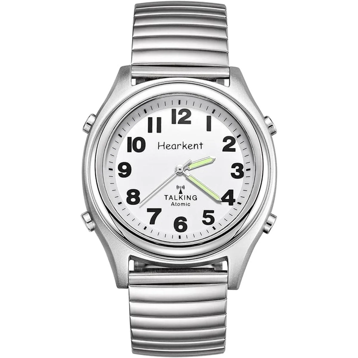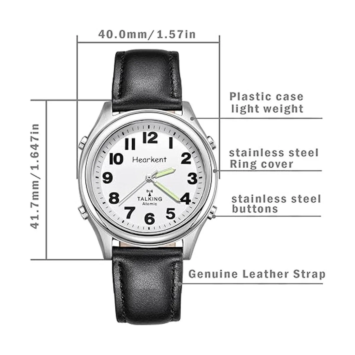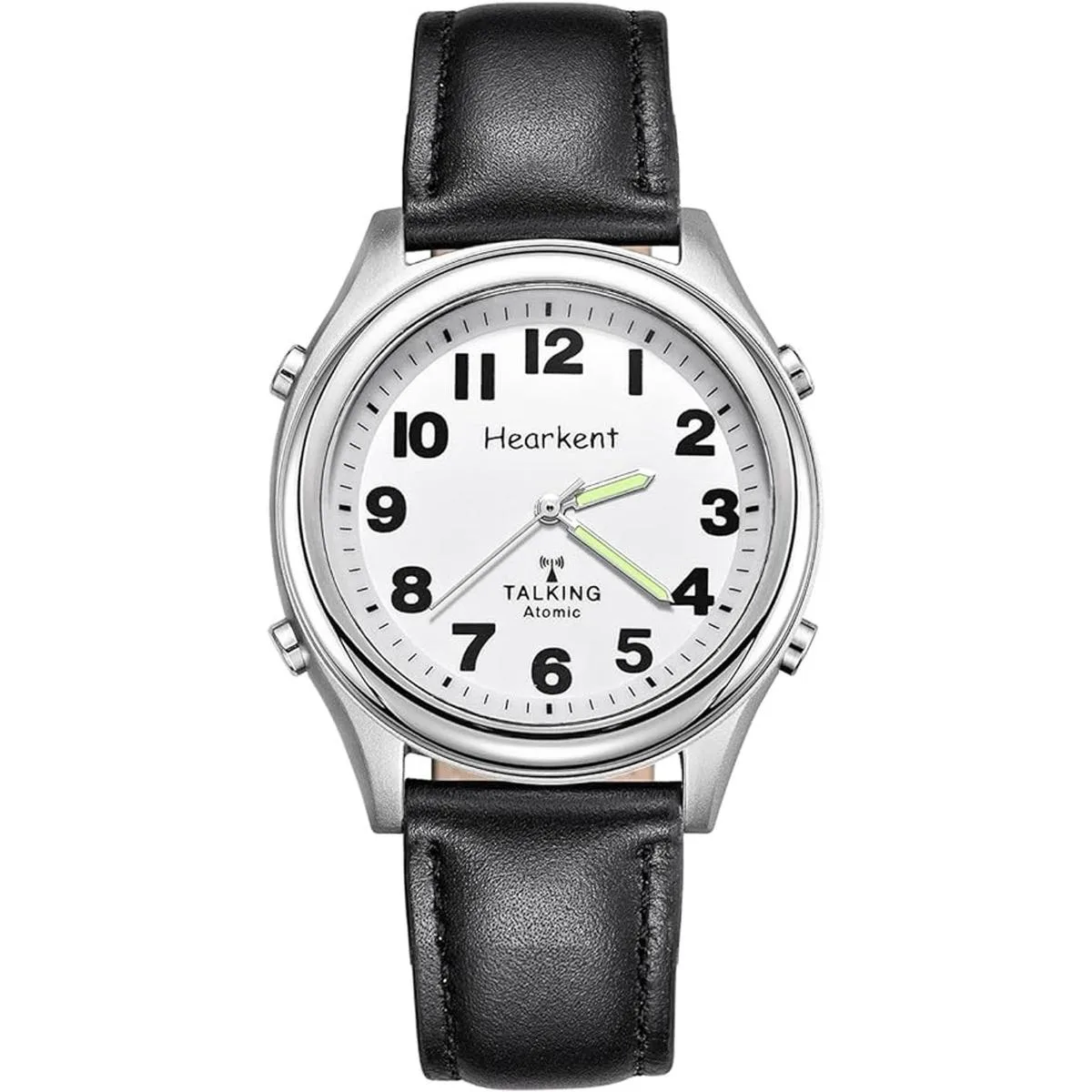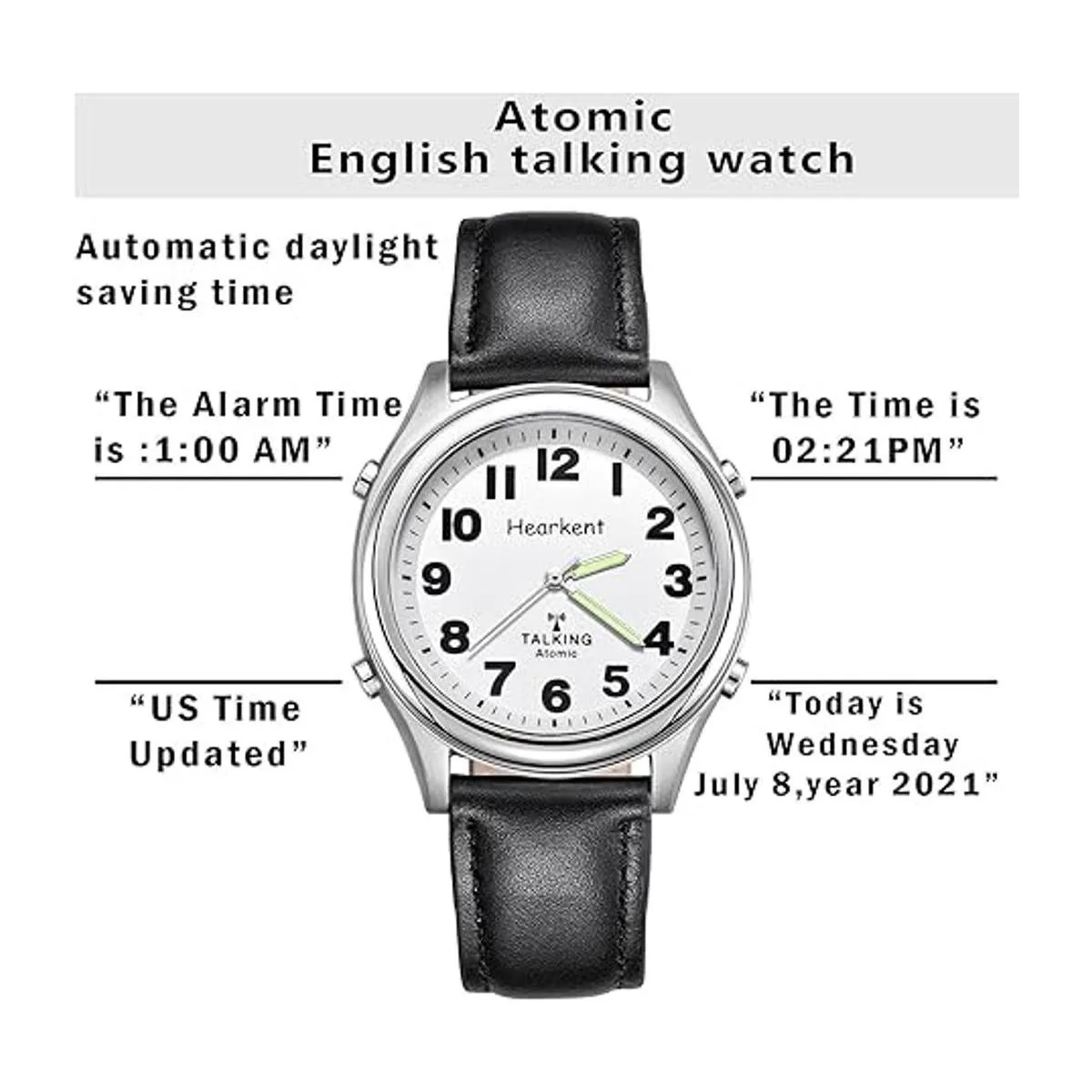 Atomic Talking Reloj de pulsera con números grandes, de cuarzo con expansión de acero inoxidable y correa de cuero, regalo para personas mayores o ciegas