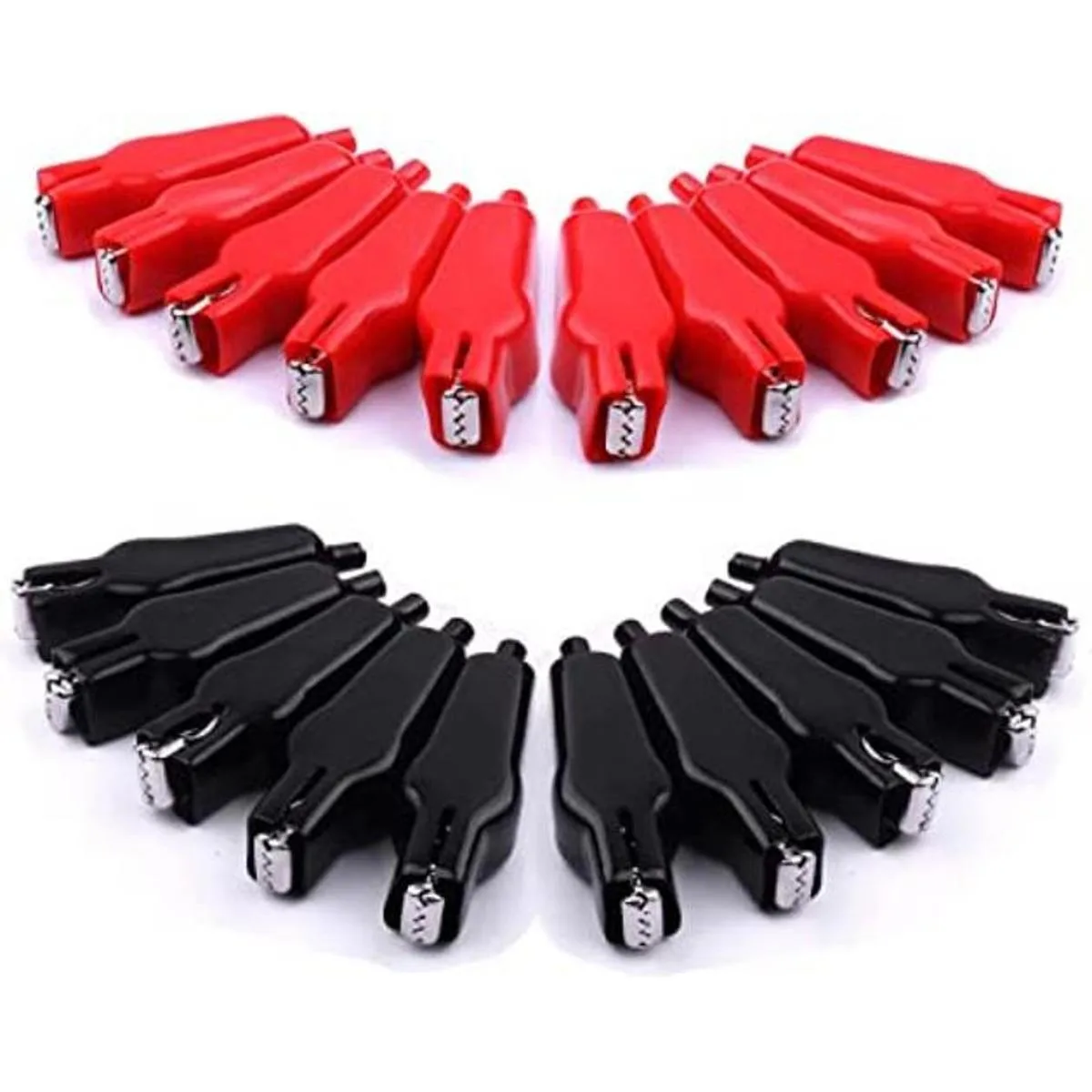 ATOPLEE 10 pares de clips de cocodrilo, 20 A, abrazadera de prueba eléctrica aislada, negro y rojo