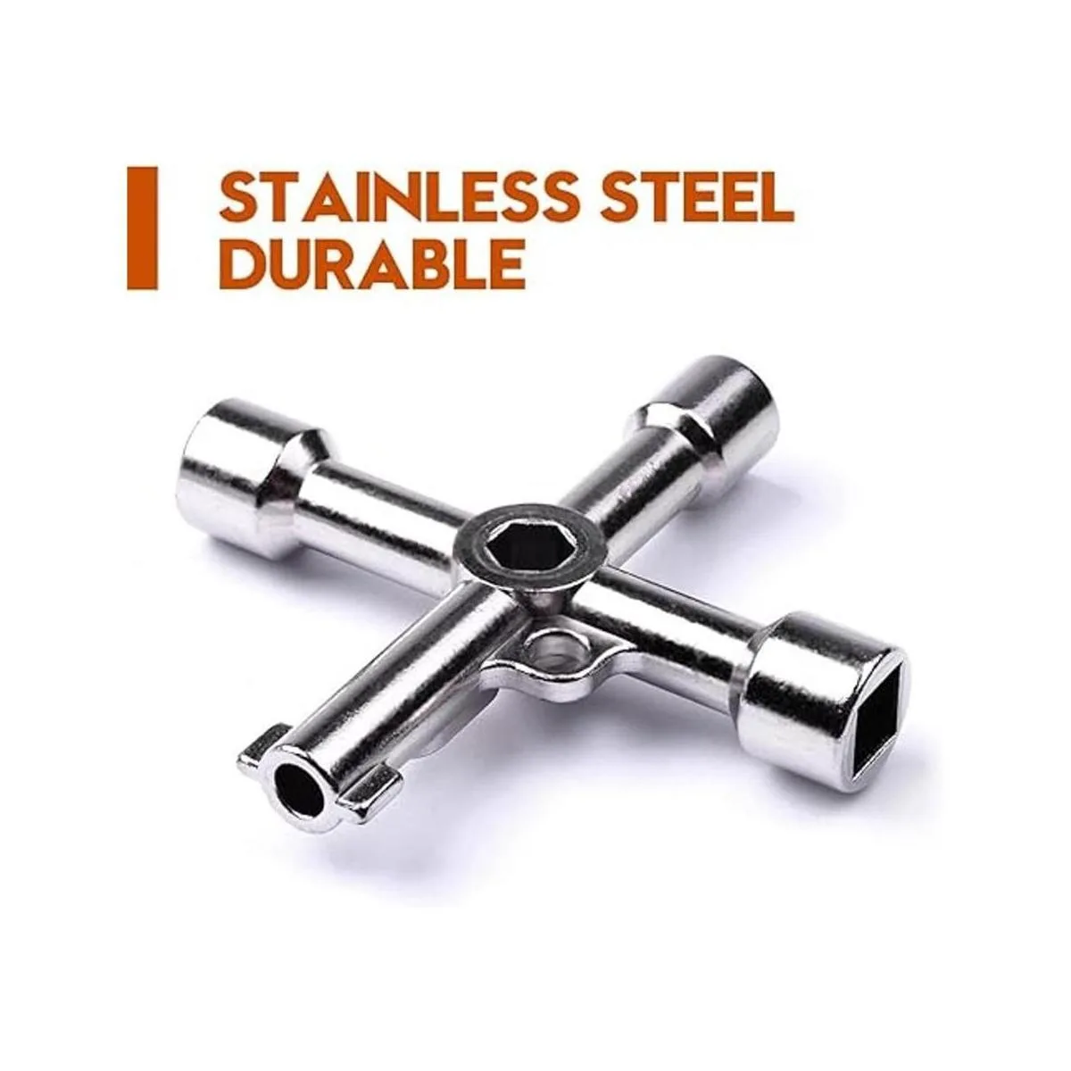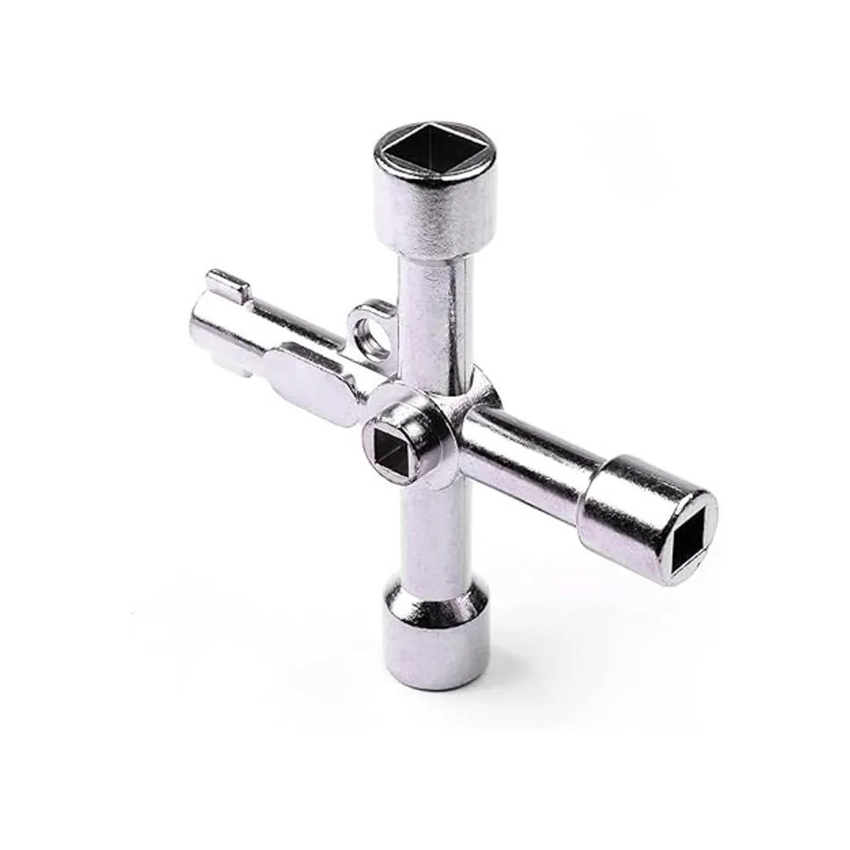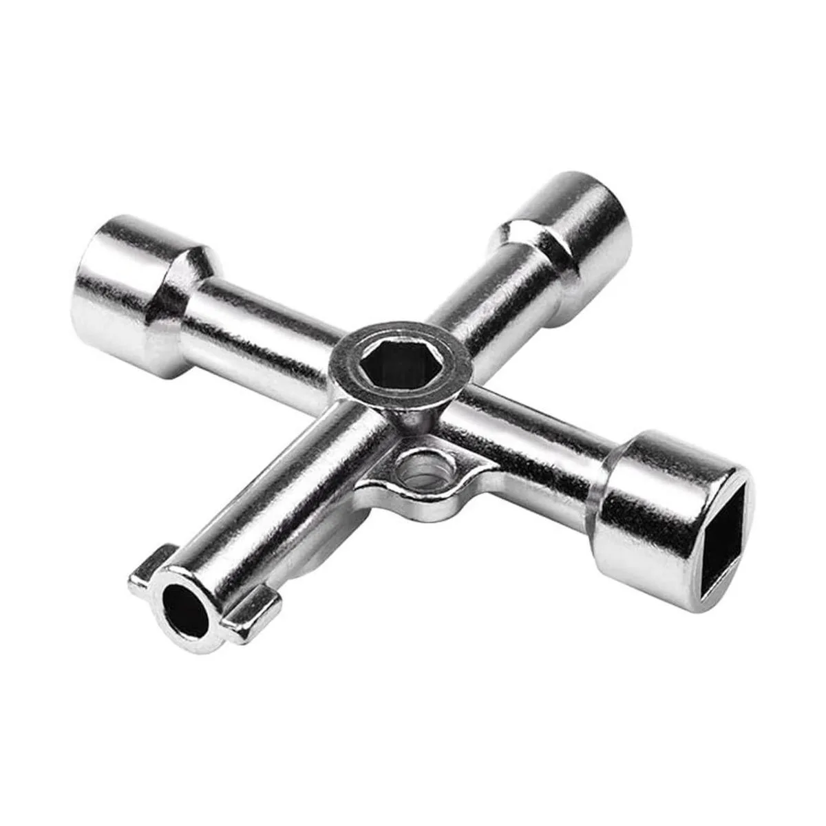 ATOPLEE Llave multifuncional de 4 vías, triángulo cruzado universal de acero inoxidablecuadrado para apertura de válvula de gabinete de elevador eléctrico