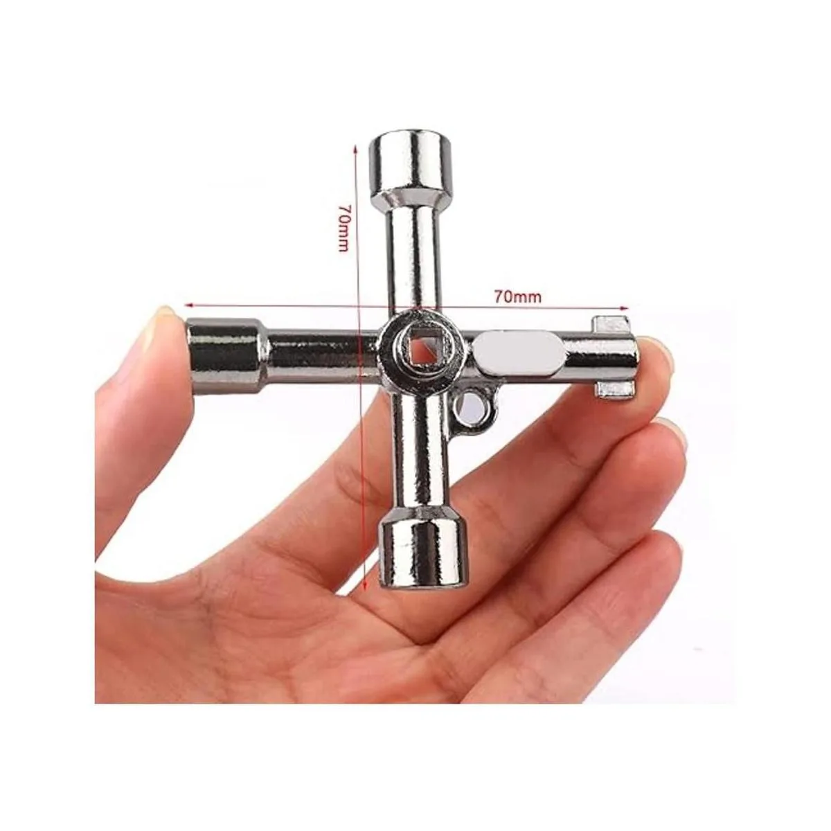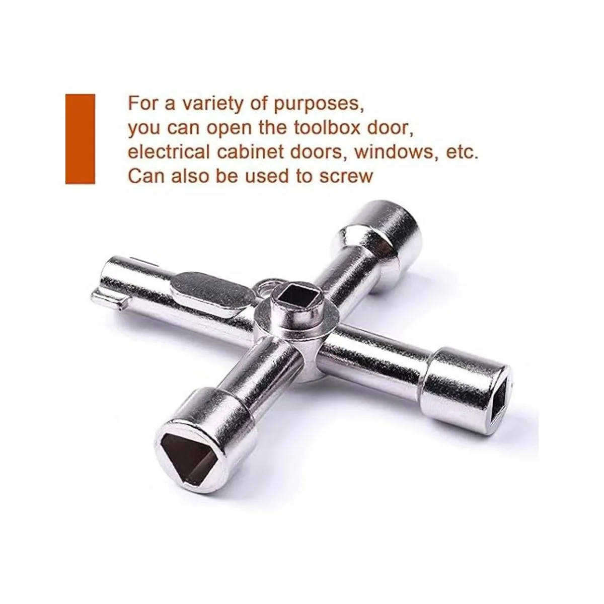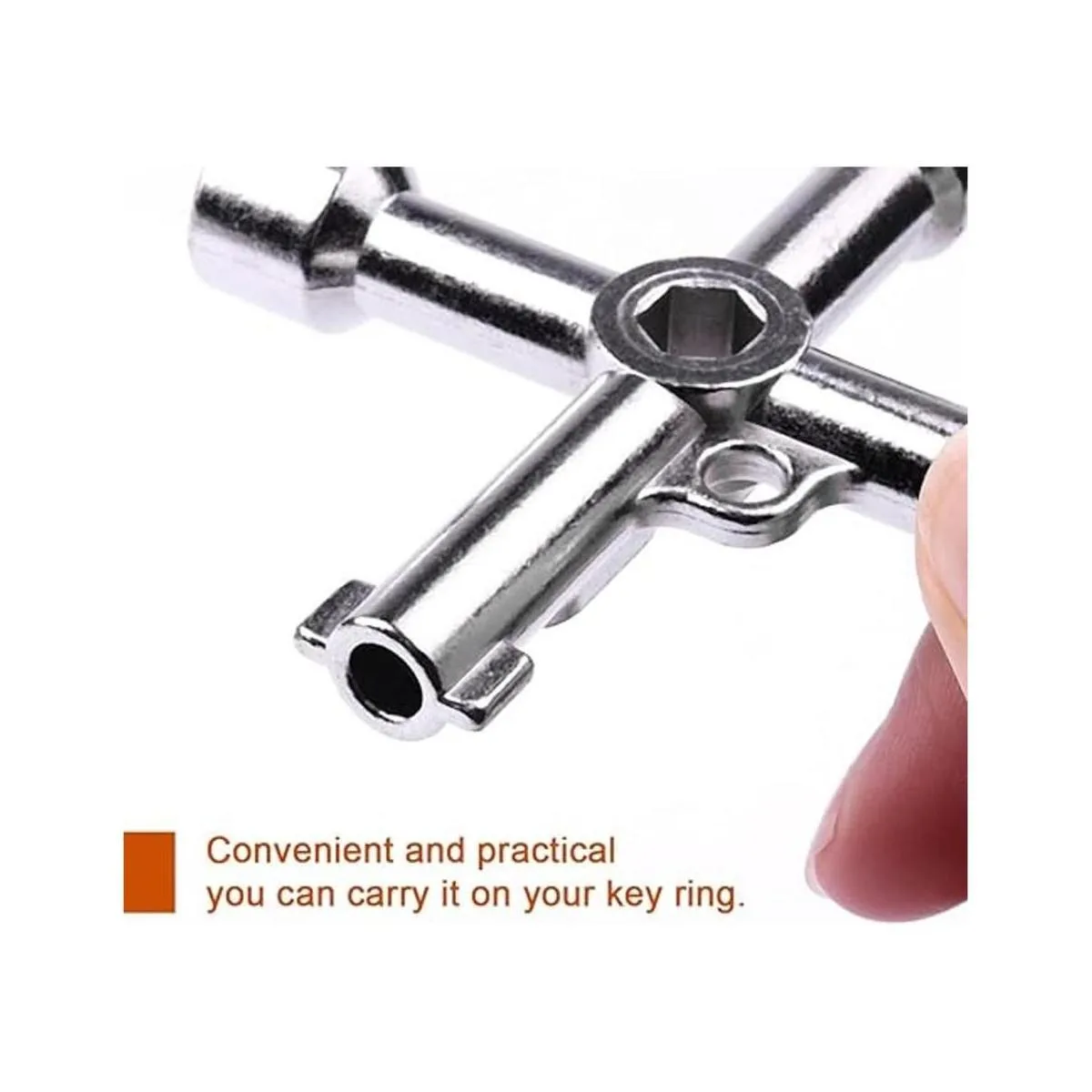 ATOPLEE Llave multifuncional de 4 vías, triángulo cruzado universal de acero inoxidablecuadrado para apertura de válvula de gabinete de elevador eléctrico