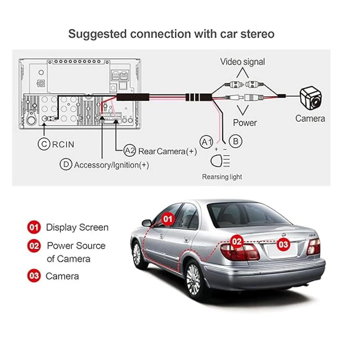 La cámara HD 720P de respaldo de estacionamiento de visión trasera emite señales de video HD 720P. El diseño especial de cableado y la capacidad de soporte de firmware del sistema permiten a los usuarios tener una visión trasera en vivo incluso cuando el vehículo está avanzando evitando obstrucciones causadas por pasajeros, reposacabezas y pilares traseros del vehículo, expandiendo el campo de visión, ofreciendo al conductor una visión sin obstáculos de los carriles detrás y eliminando los puntos ciegos tradicionales.