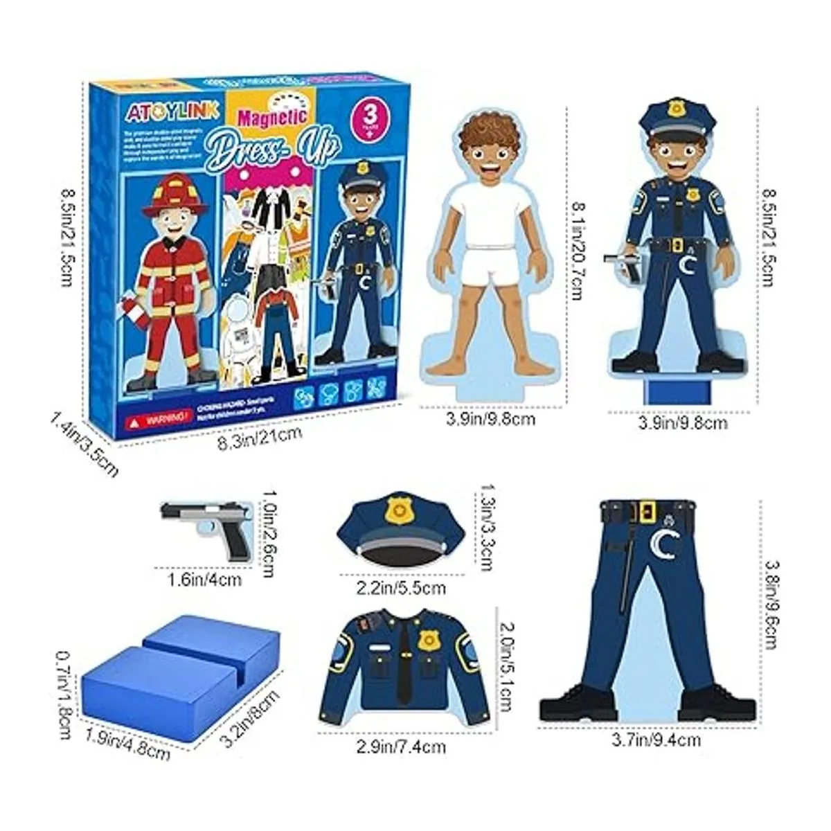 Calidad prémium: hecho de material de madera de alta calidad, no tóxico, seguro y duradero. Sin bordes afilados dañinos, tus hijos pueden jugar a este juego de disfraces sin preocupaciones. Todas las piezas están basadas en imanes, que se pueden utilizar en refrigerador, pizarra, etc. Edad recomendada por el fabricante: 3 años en adelante.