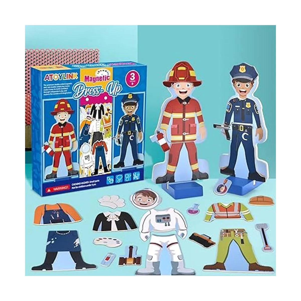 Atoylink Juego de muñecas magnéticas de madera, juego de 40 unidades, ayudantes comunitarios, juegos a juego, imanes de nevera para niños pequeños, juguetes de aprendizaje preescolar, regalos de cumpleaños para niños