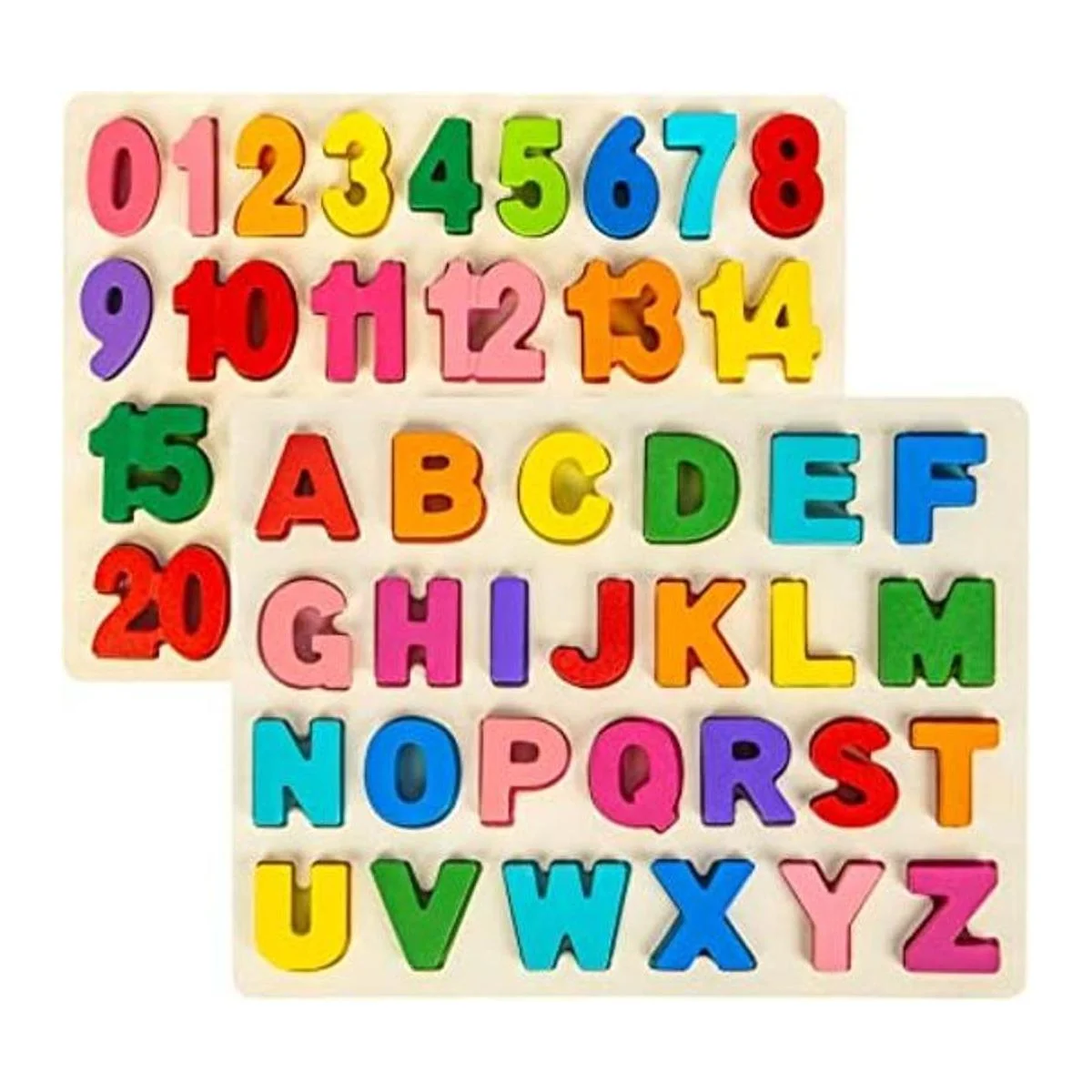 Attmu Rompecabezas de madera para niños pequeños, rompecabezas del alfabeto y rompecabezas de números, juguetes educativos 2 en 1 con tablero de rompecabezas ABC de madera gruesa, regalos para niñas y niños, juego de 2