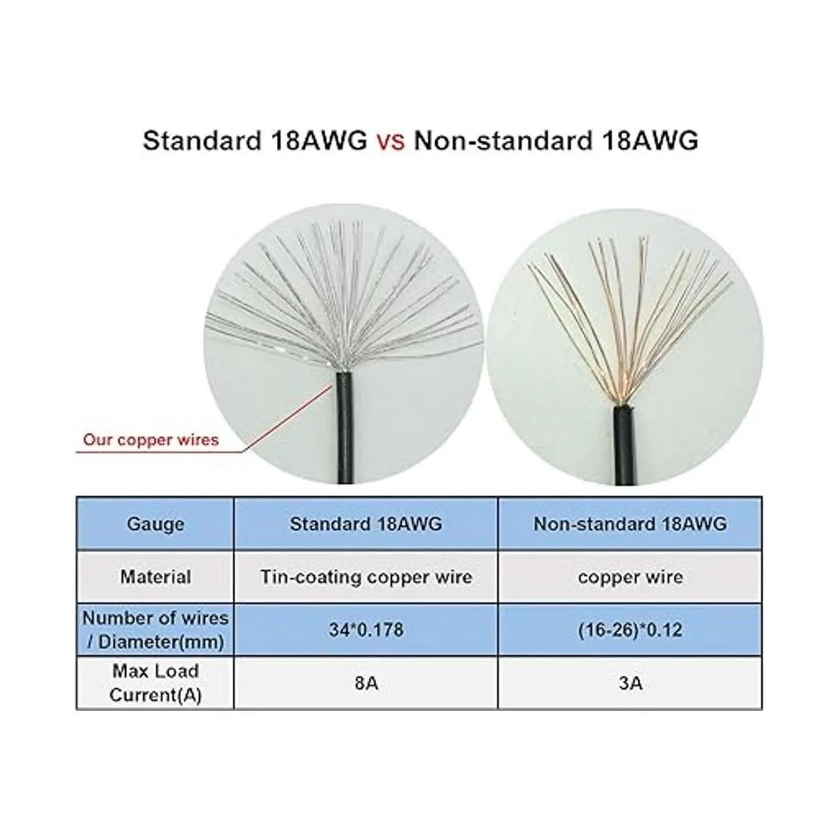 ParameterLengthincluding connectors:9.5inch24cm, Gauge: 100718AWGstandard tincoating copper wire, Rated power: 200W, Quantity: 3pcs, Selfadhesive tape1pcs;