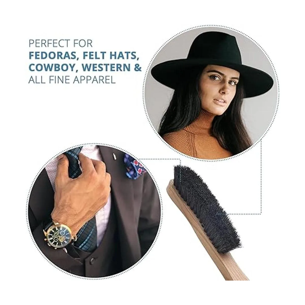 Cerdas suaves naturales: las cerdas de pelo de caballo son suaves, flexibles, naturales y perfectas para quitar el polvo de la pelusa, la suciedad, la siesta o el polvo de sombreros de fieltro, sombreros occidentales, vaqueros y vaqueros, trajes, lana, cachemira y terciopelo.