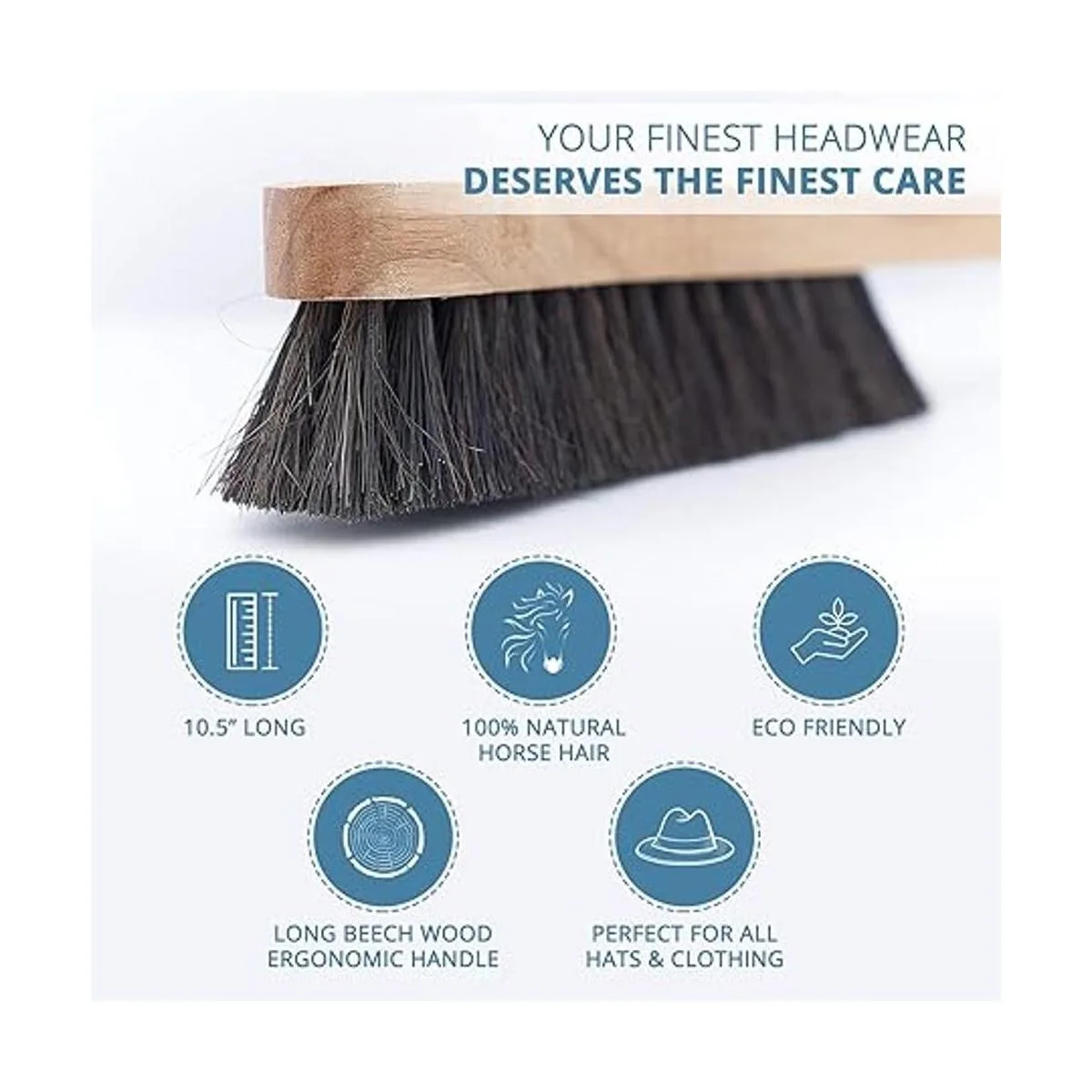 Renueva tu sombrero: limpia, refresca y renueva tus sombreros, gorras, fedoras, gorros, gorros, gorros, pajita, sombrero de Panamá, gorra de periódico con este cepillo de alta calidad. El mango curvado natural de madera de haya y las cerdas de pelo de caballo se combinan para limpiar y refrescar rápida y eficazmente tus gorros favoritos.