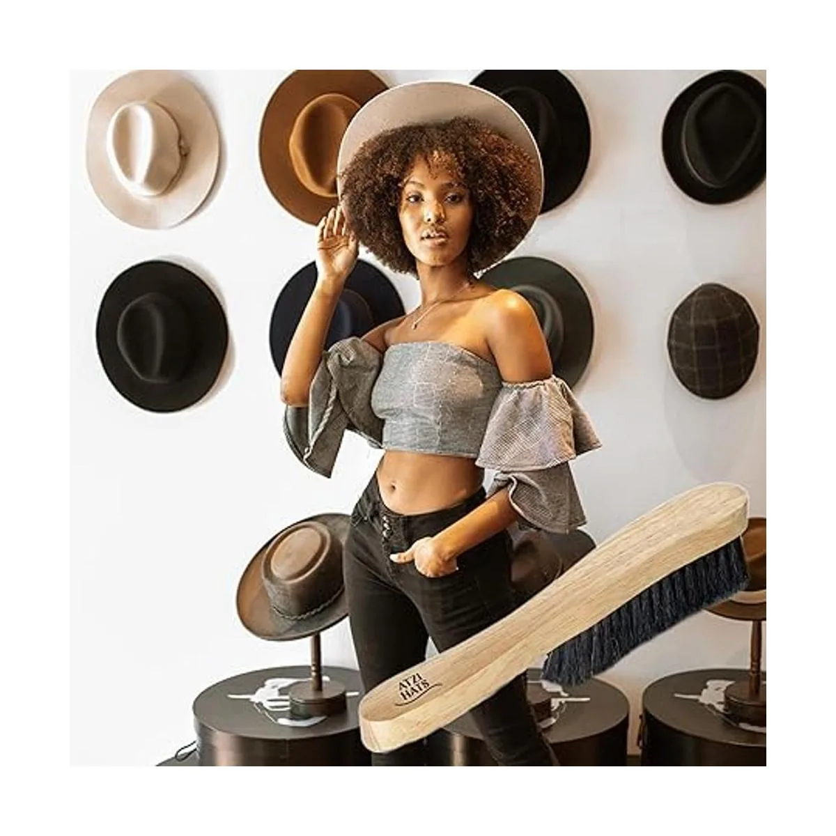 Atzi Hats Fedora Cepillo quitapelusas para sombreros de fieltro, 100 pelo de caballo negro, Beige, M