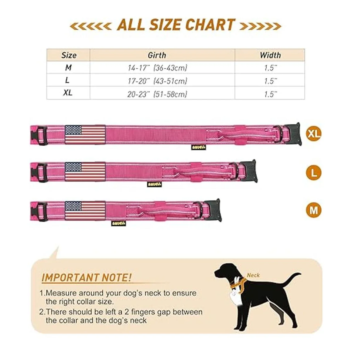 Advertencia: 3 tamaños para elegir. Sigue la tabla de tallas para medir el cuello de tu perro cuidadosamente antes de realizar el pedido para asegurarte de que el collar se ajusta bien a tu perro.