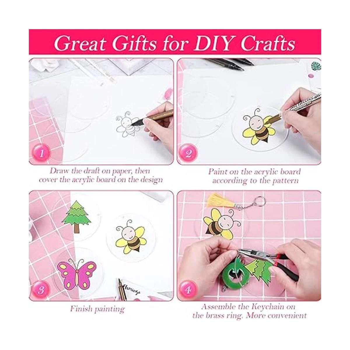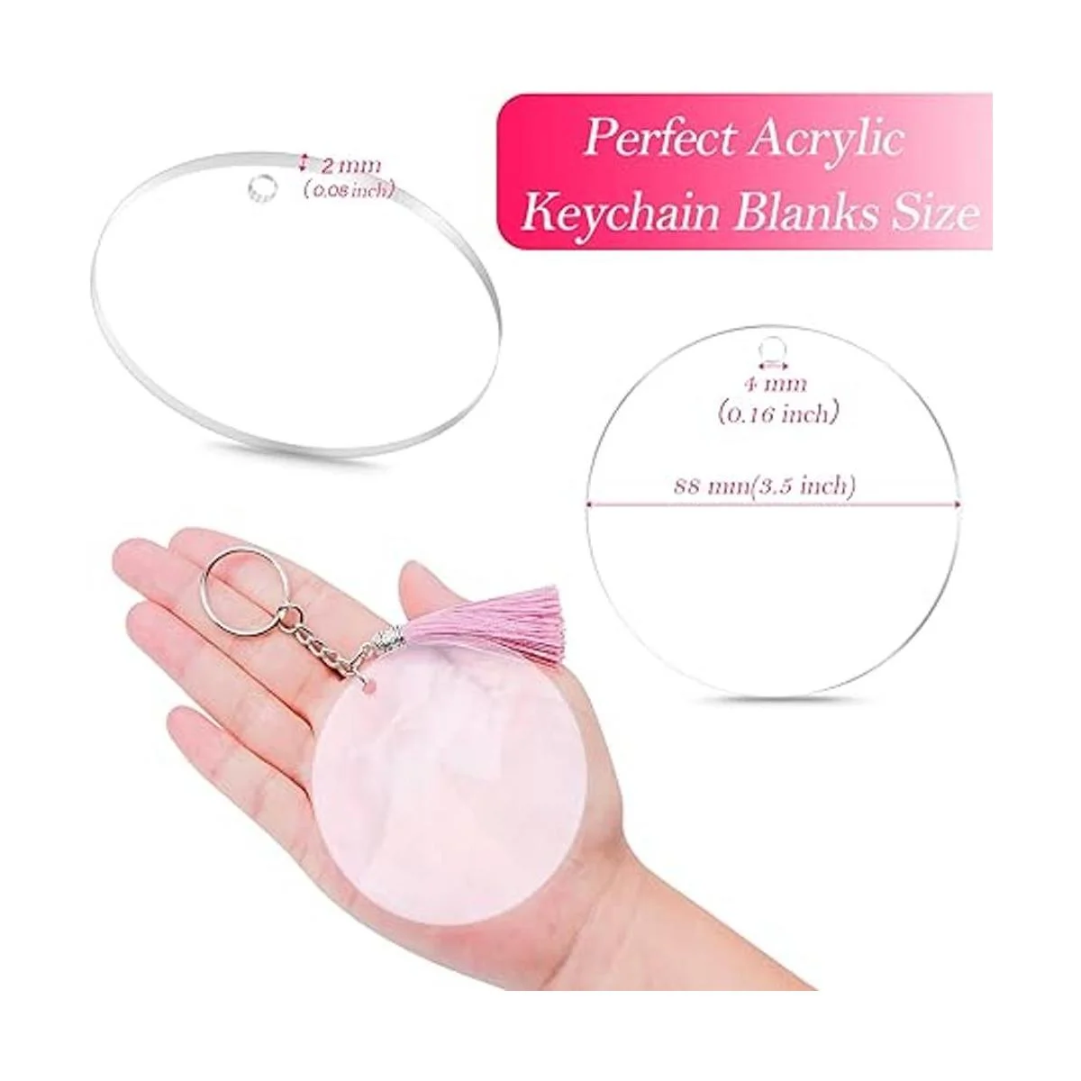 Perfecto para adornos personalizados: puedes dibujar, tallar, collagear, máquinas troqueladas para hacer diseños o pegar tu propia calcomanía favorita en los llaveros acrílicos de 2.5 pulgadas para decorarlos, el llavero acrílico en blanco es adecuado para hacer llaveros, tiradores de cremallera, etiquetas de bolsa de mochila, adornos, etiquetas de regalo, decoración de colgantes, recuerdo y muchos otros proyectos de manualidades, personaliza con vinilo/caligrafía/bolígrafo de pintura a base de aceite y tendrás un gran regalo.