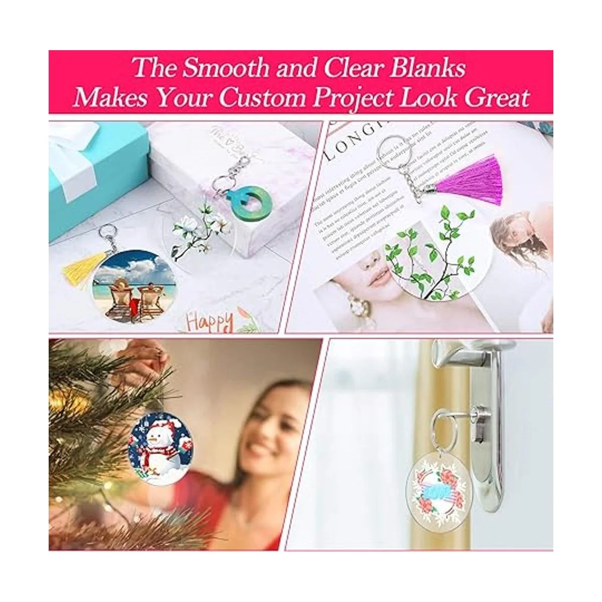 Amplia aplicación: nuestros discos acrílicos para manualidades se pueden aplicar como llaveros, base de luz LED, etiqueta de bolsa de mochila, adornos acrílicos, tarjetas de lugar acrílicas, etiqueta de regalo, proyecto de manualidades para adultos/niños, regalo de Navidad, placas de nombre, etc. También se puede utilizar con tu buena imaginación como un colgante para decorar tu fiesta, cita, boda o como un recuerdo especial.