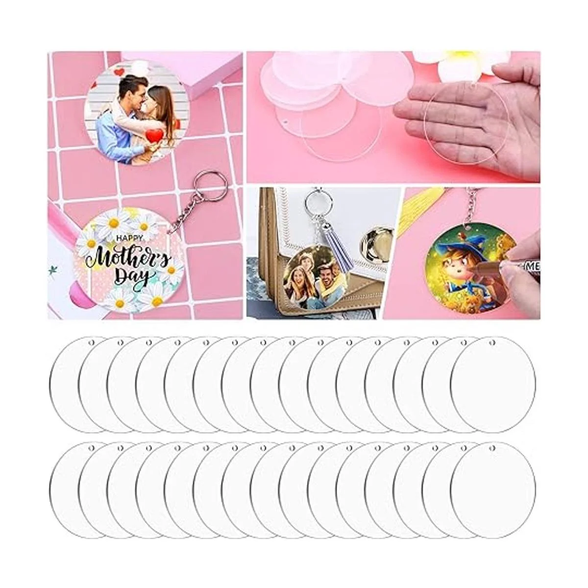 Llavero acrílico en blanco, 30 unidades, gran valor: paquete con 30 llaveros circulares acrílicos de sublimación con agujero, son suficientes para tus proyectos diarios de bricolaje y necesidades de arte, como usarlos para grabar y hacer artículos epoxi, pintar algunos adornos para las vacaciones, hacer llaveros para regalos familiares y amigos.