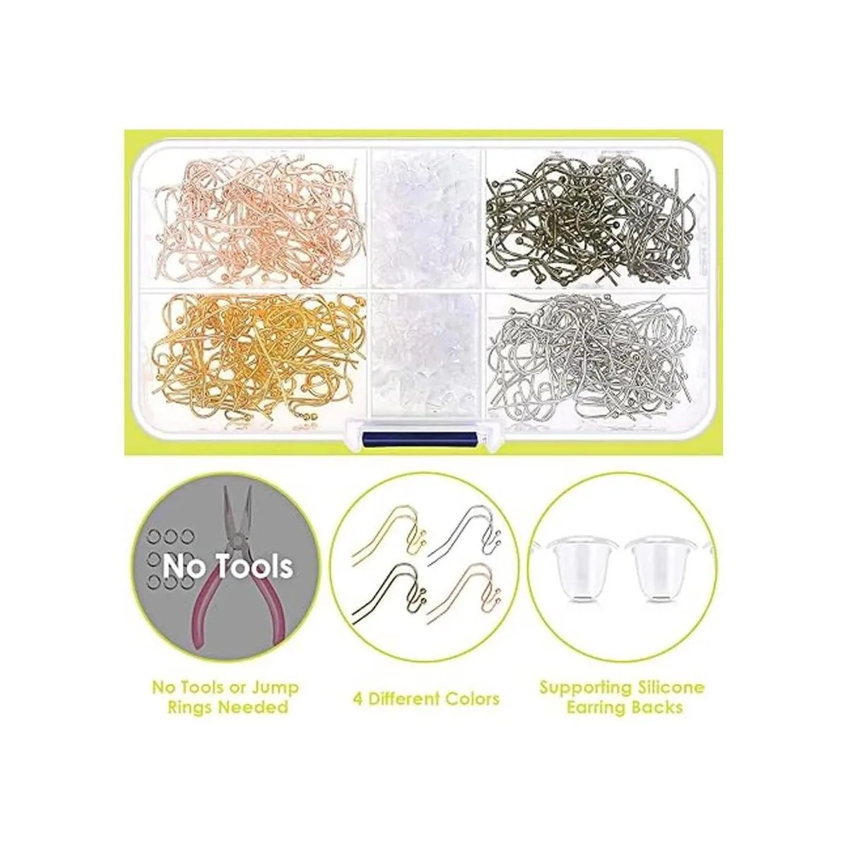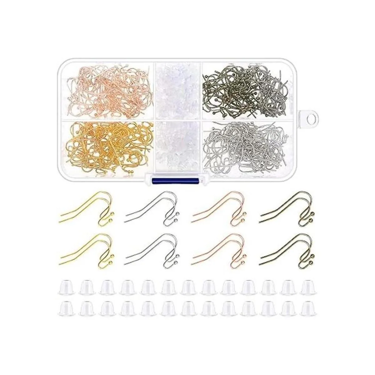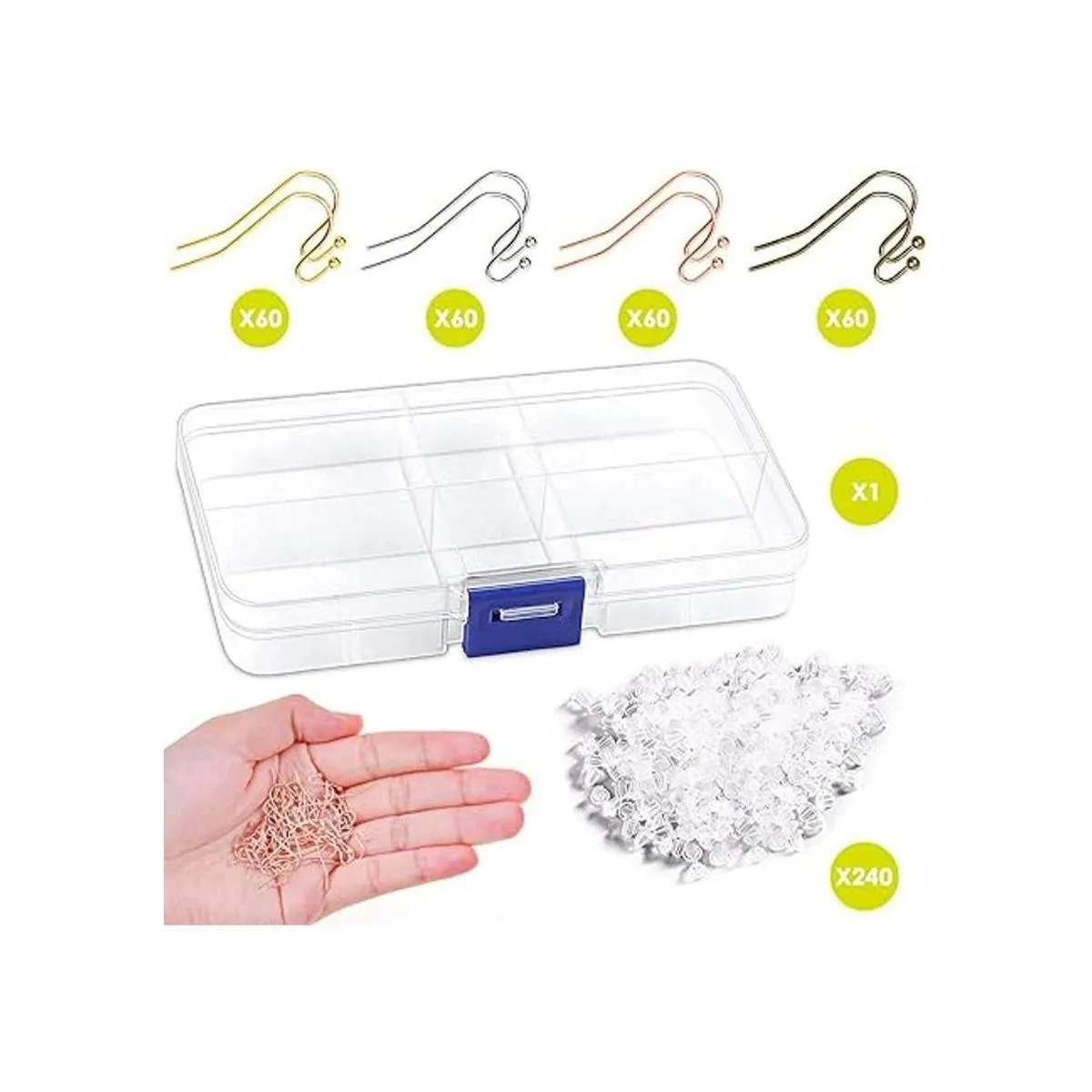 Audab Ganchos para aretes, kit de fabricación de aretes de 480 piezas, incluye 240 ganchos de aretes franceses, alambre de oreja y 240 piezas de aretes para suministros de fabricación de joyas y fabricación de aretes de bricolaje