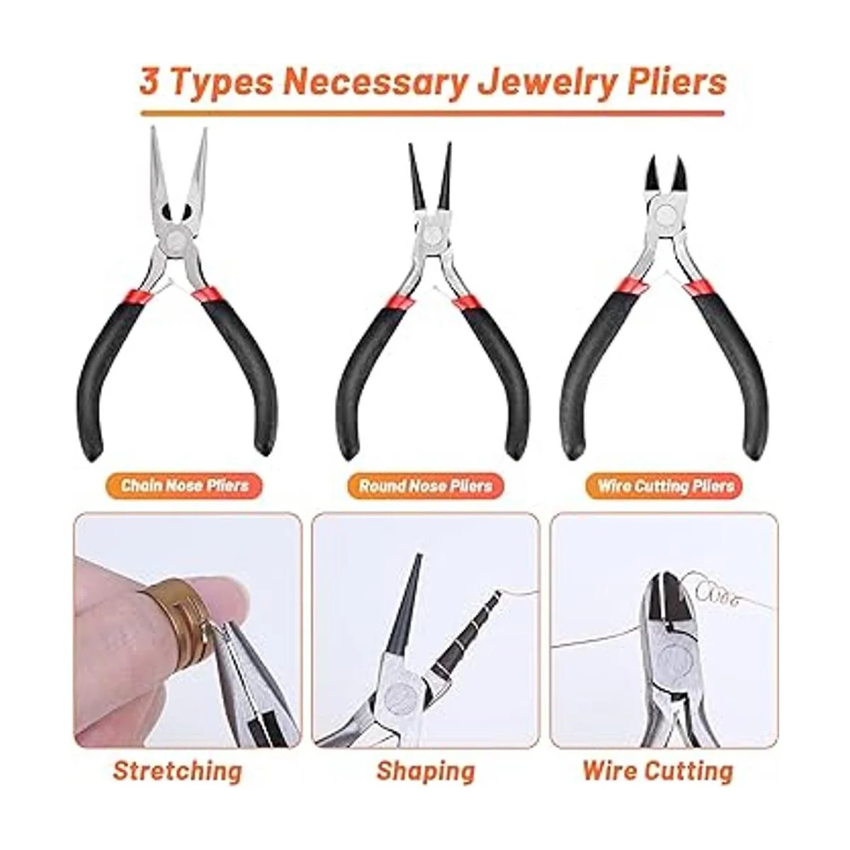 Herramientas de joyería para manualidades: equipado con herramientas esenciales de fabricación de joyas de 3 alicates de joyería necesarios: alicates de punta redonda, alicates de corte de alambre y alicates de punta de cadena ayudan a los amantes profesionales o simplemente aficionados a la fabricación de joyas y principiantes a terminar su proyecto de fabricación de joyas, proyecto de cuentas, reparación de joyas y otros proyectos de bricolaje