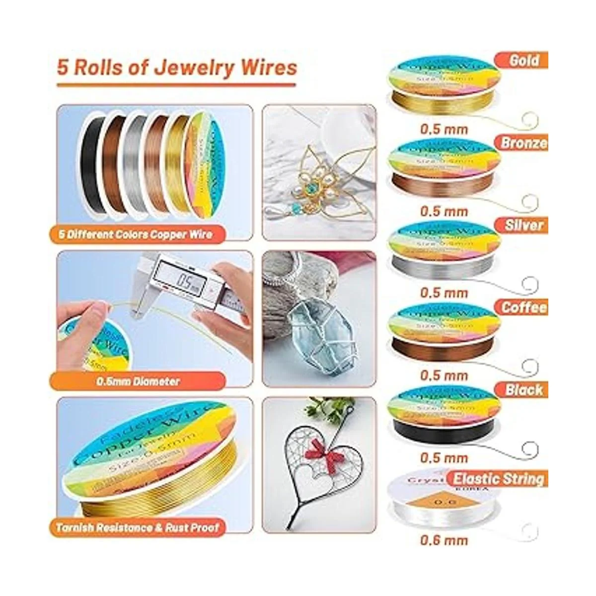 Alambre de joyería para hacer anillos: el kit de fabricación de herramientas de anillos Audab incluye 5 rollos de alambre de manualidades de anillo. Todos estos alambres de cobre para joyas son de aprox. 0.020 in calibre 24, representa 5 colores diferentes de oro, plata, cobre, café y negro. Estos cables de joyería para envolver son de alta calidad y perfectos para envolver piedras, cuentas, collares, pulseras, aretes y proyectos de fabricación de joyas
