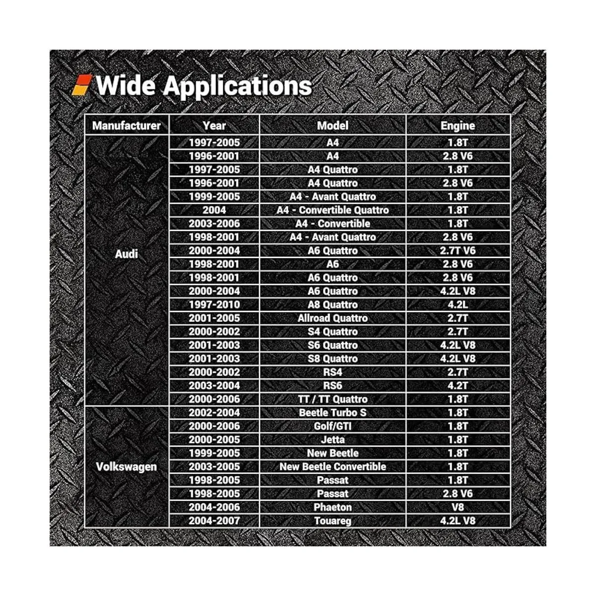 1 modelo de coche aplicable: Audi A4/A6/A6 Quattro/A8/TT/TT Quattro/S4/S6/RS6, VOLKSWAGEN Passat/Polo/Golf/Jetta/New Beetle/Touareg/Touareg V6