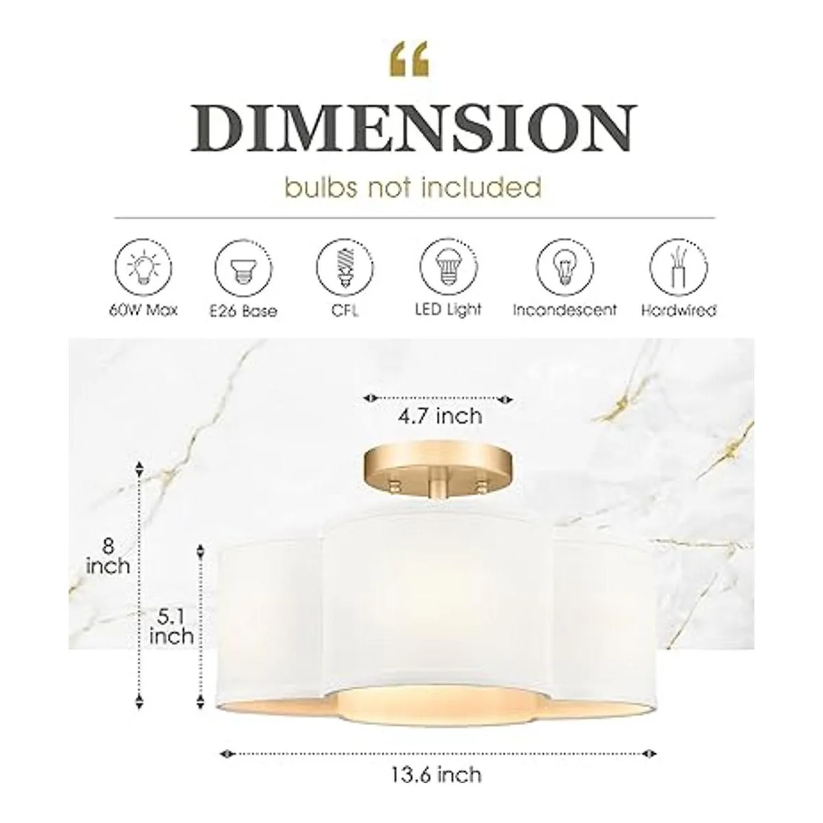 Amplias aplicaciones: la pantalla de tela complementa todos los estilos de decoración mientras que proporciona una luz cálida y uniforme. Ideal para una cocina, lavandería, pasillo, vestíbulo, comedor, sala de estar, dormitorio, entrada, esquina, habitación de los niños, escalera, granero, sótano y mucho más. La lámpara de techo dorada atraerá tus sentidos e iluminará tu hogar.