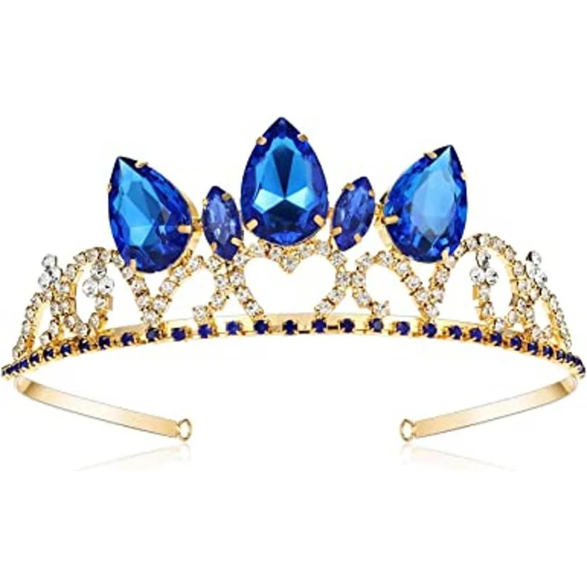 Audrey Crown Descendants Disfraz de 3 tiaras, regalos de fiesta de cumpleaños, tocado de zafiro lágrima, joyería para mujeres y niñas, Acrílico