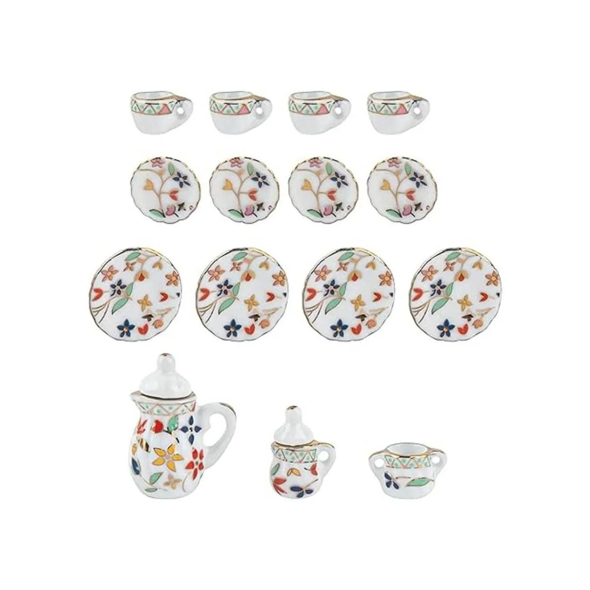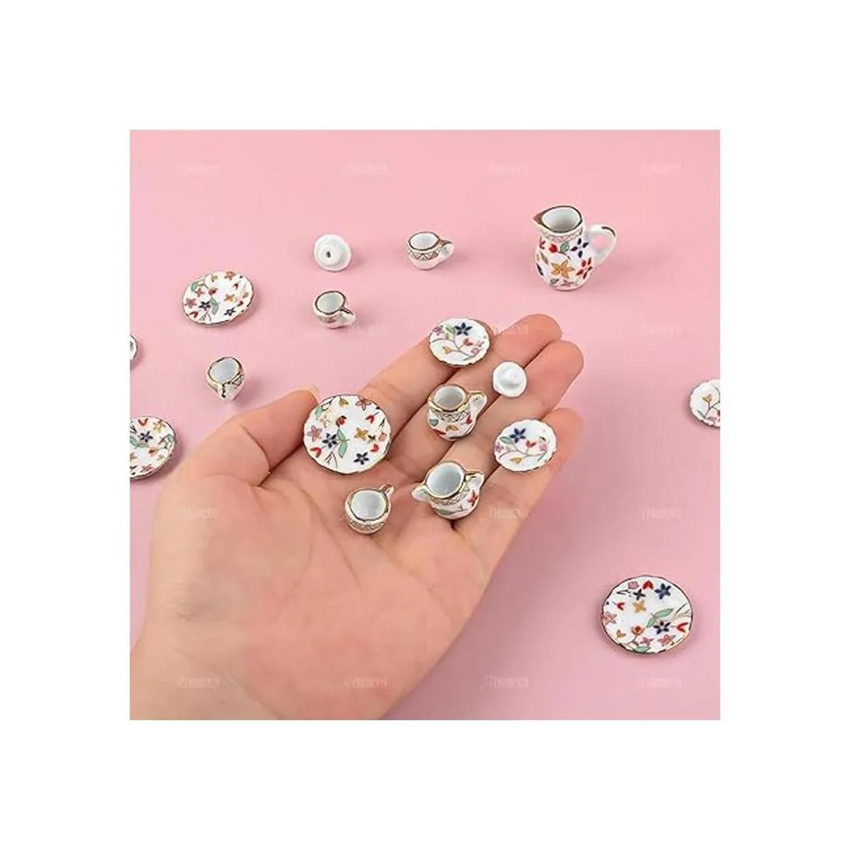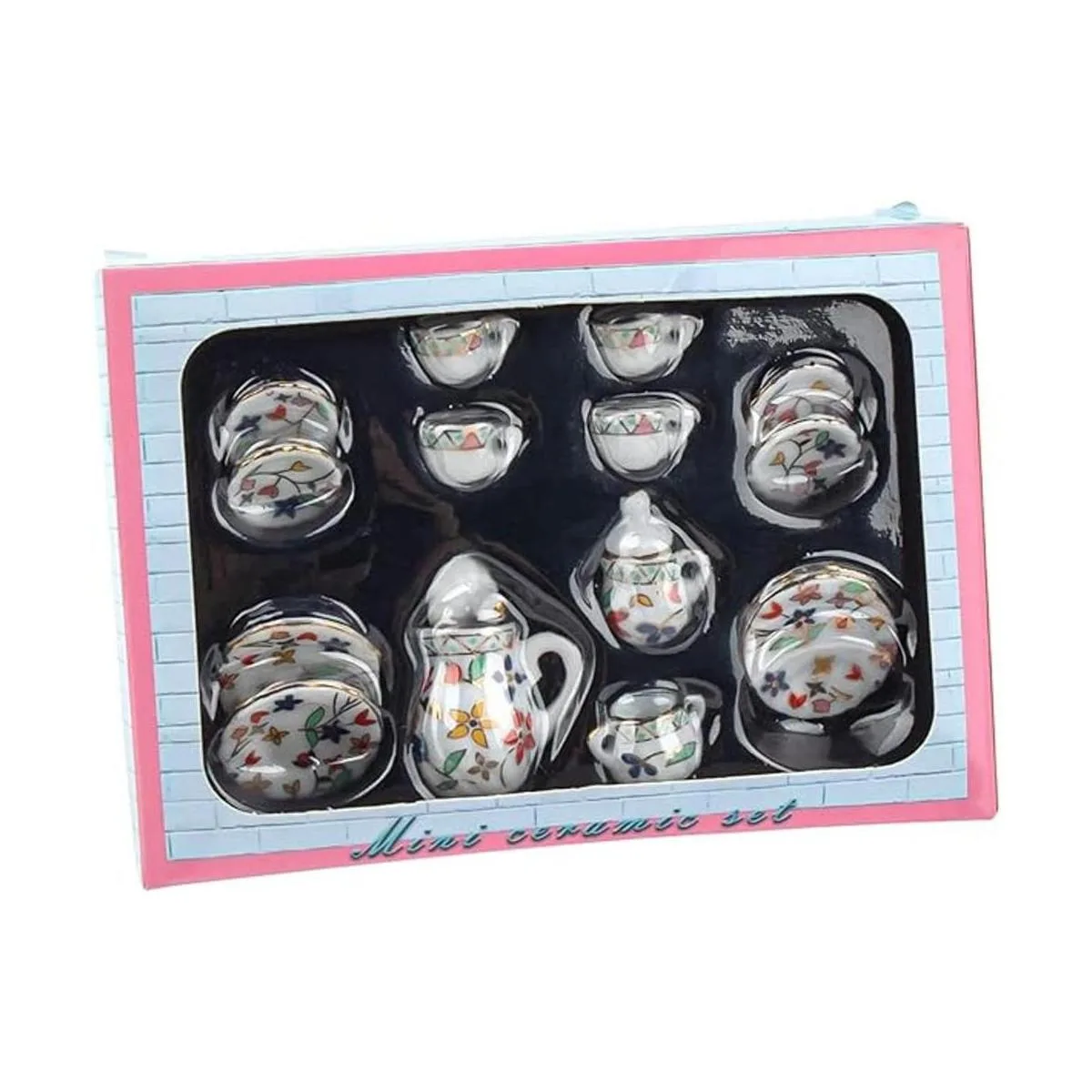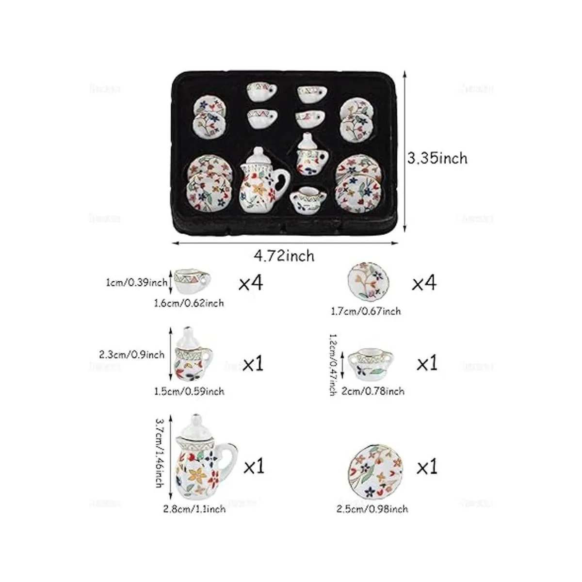 Cantidad: 1 mini juego de té, incluye 1 tetera, 1 azucarero, 1 crema, 4 platos, 4 tazas, 4 platillos.