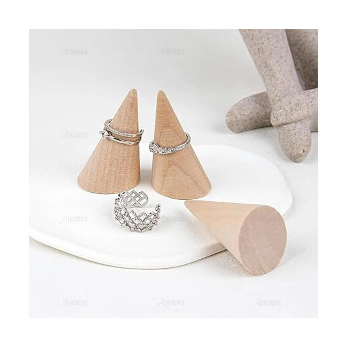 AUEAR, Paquete de 10 anillos pequeños de madera natural con forma de cono para dedos, joyería de madera, organizador de bricolaje para manualidades