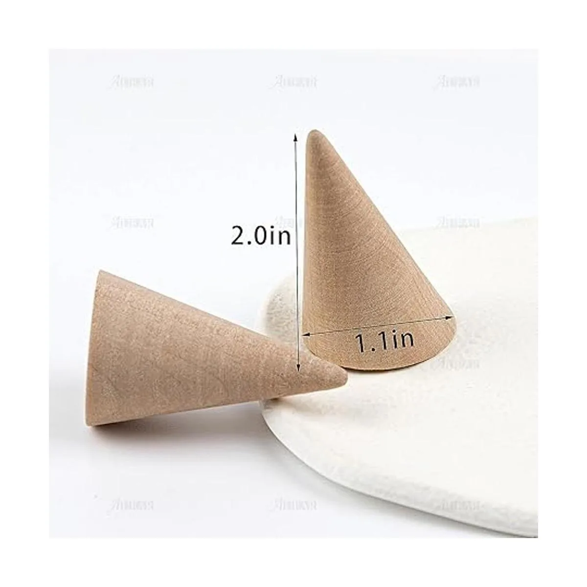 El paquete incluye: 10 soportes de anillo de cono de madera para manualidades
