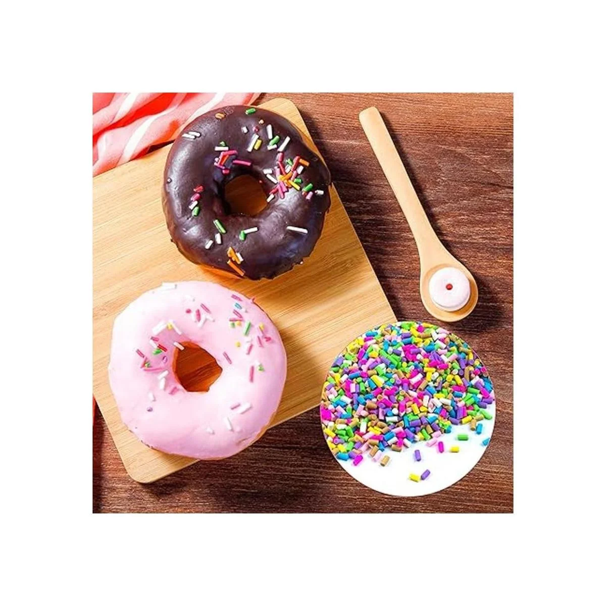 AUEAR, Paquete de 4 coloridos gránulos falsos de caramelos, dulces, decoraciones de azúcar para pasteles falsos de postre de simulación de alimentos 2.82 oz, 4 colores