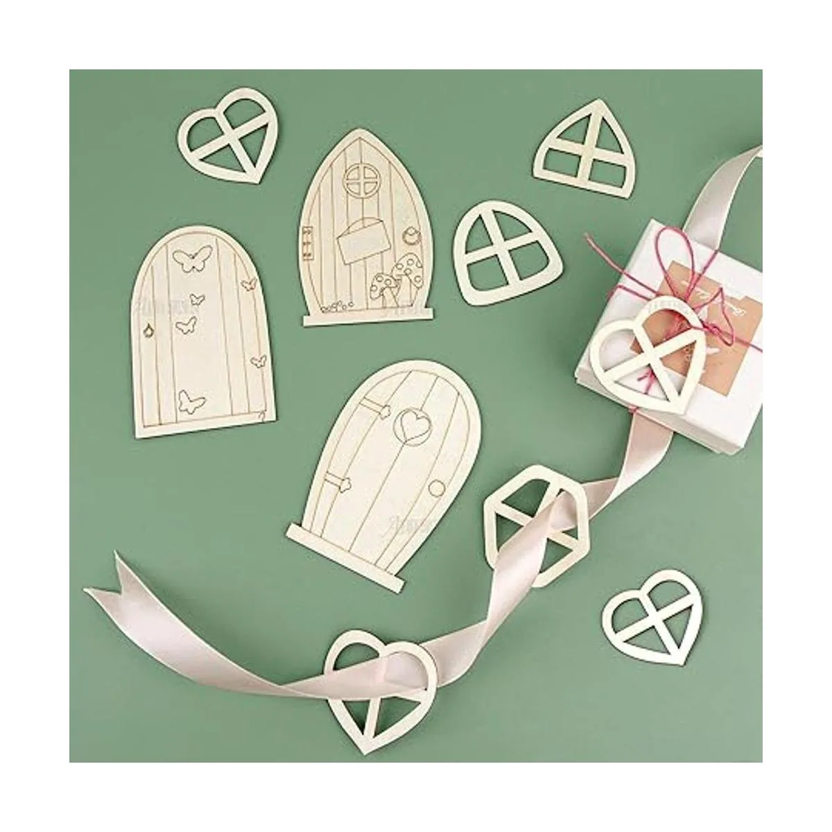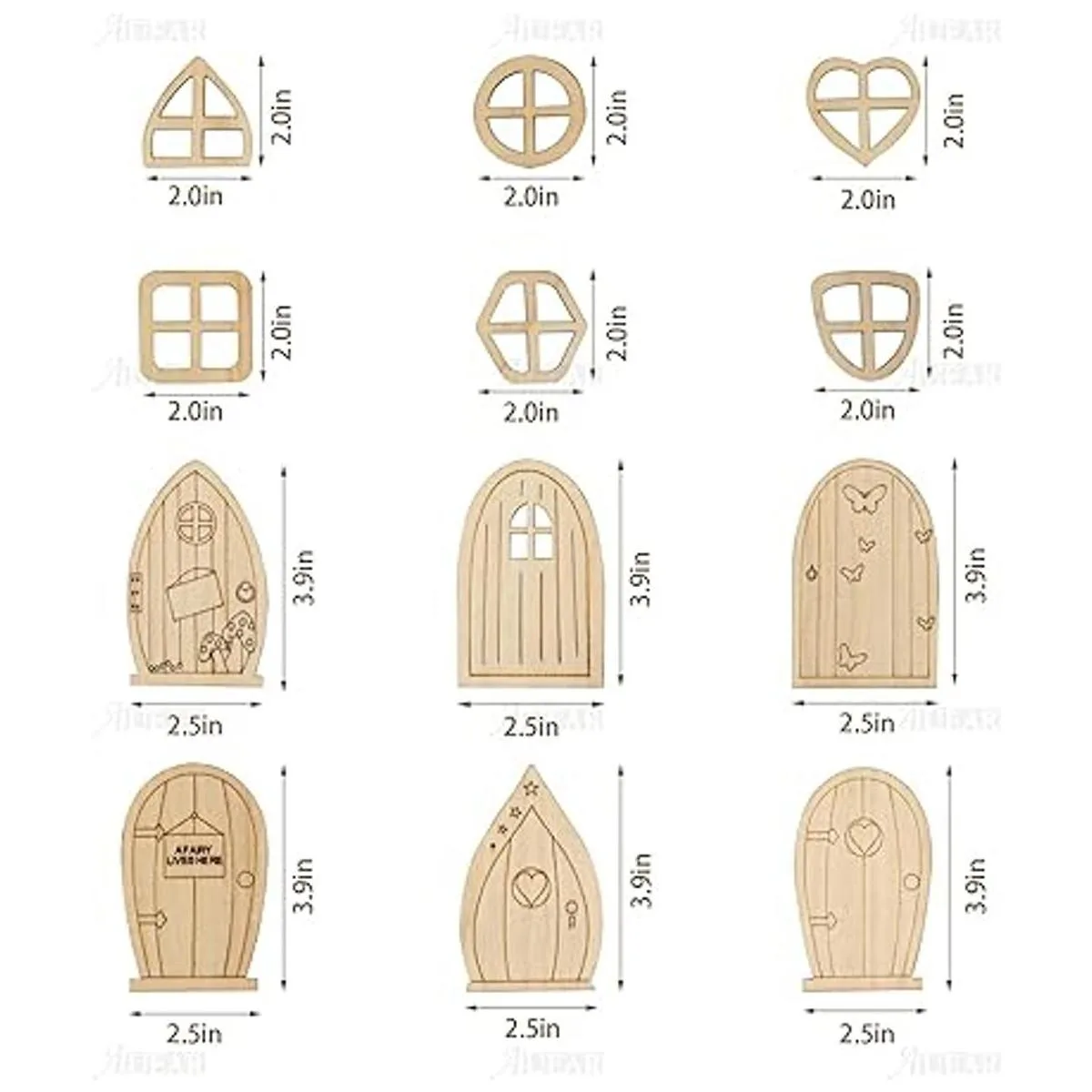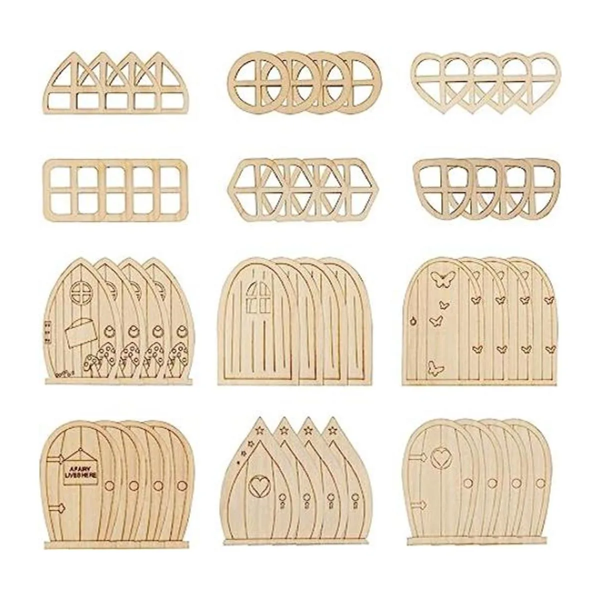 AUEAR, Paquete de 48 puertas de jardín de madera en miniatura, ventanas sin acabar, accesorios de ventana de hadas sin pintar, mini casa de hadas, manualidades para decoración de pared, hogar, fiesta estilo B