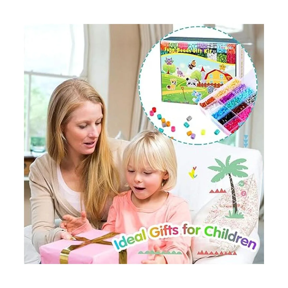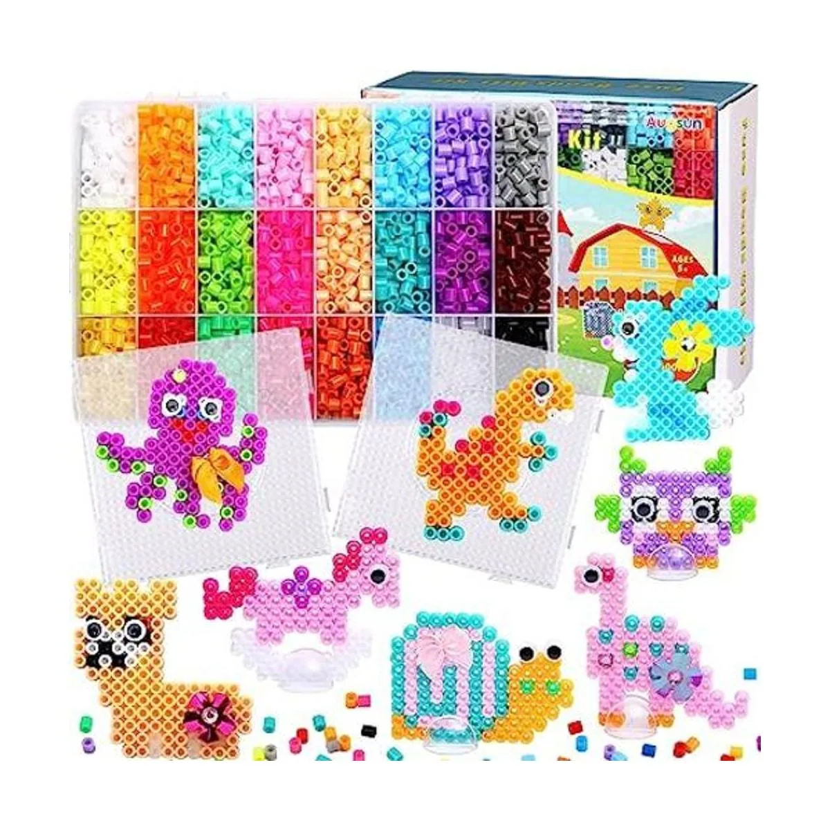 Regalo ideal para niños: el rico juego de regalo de cuentas fusibles es adecuado para niños y niñas de 5, 6, 7 y 8 años que aman hacer manualidades de arte. El kit de manualidades de cuentas Augsun para niños viene con una hermosa caja de regalo, que es un regalo ideal para niños en Navidad, Año Nuevo, cumpleaños u otros momentos memorables.