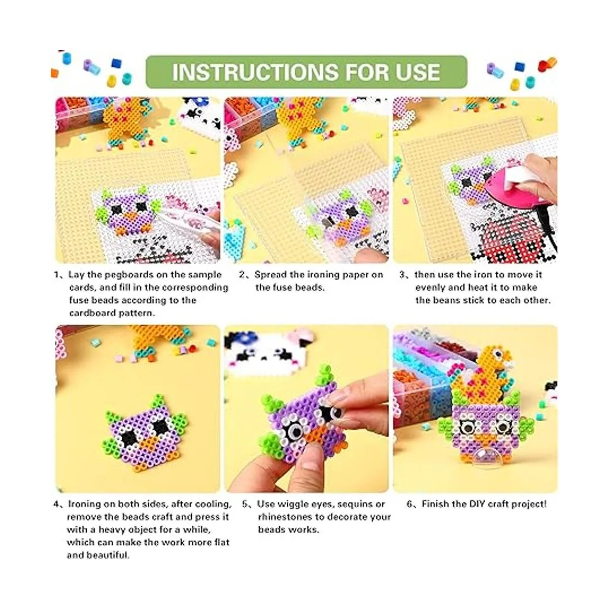 Feliz tiempo entre padres e hijos: con este kit de manualidades de cuentas fusibles, la atención de los niños se puede desviar bien de los productos electrónicos, enriqueciendo así su capacidad práctica, capacidad de reconocimiento de color y capacidad de pensamiento. Durante las vacaciones, haz obras de arte con tus hijos y añade afecto entre ti.