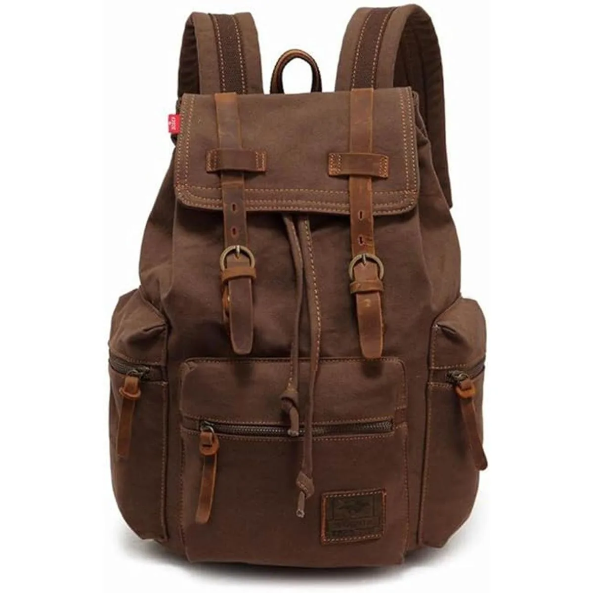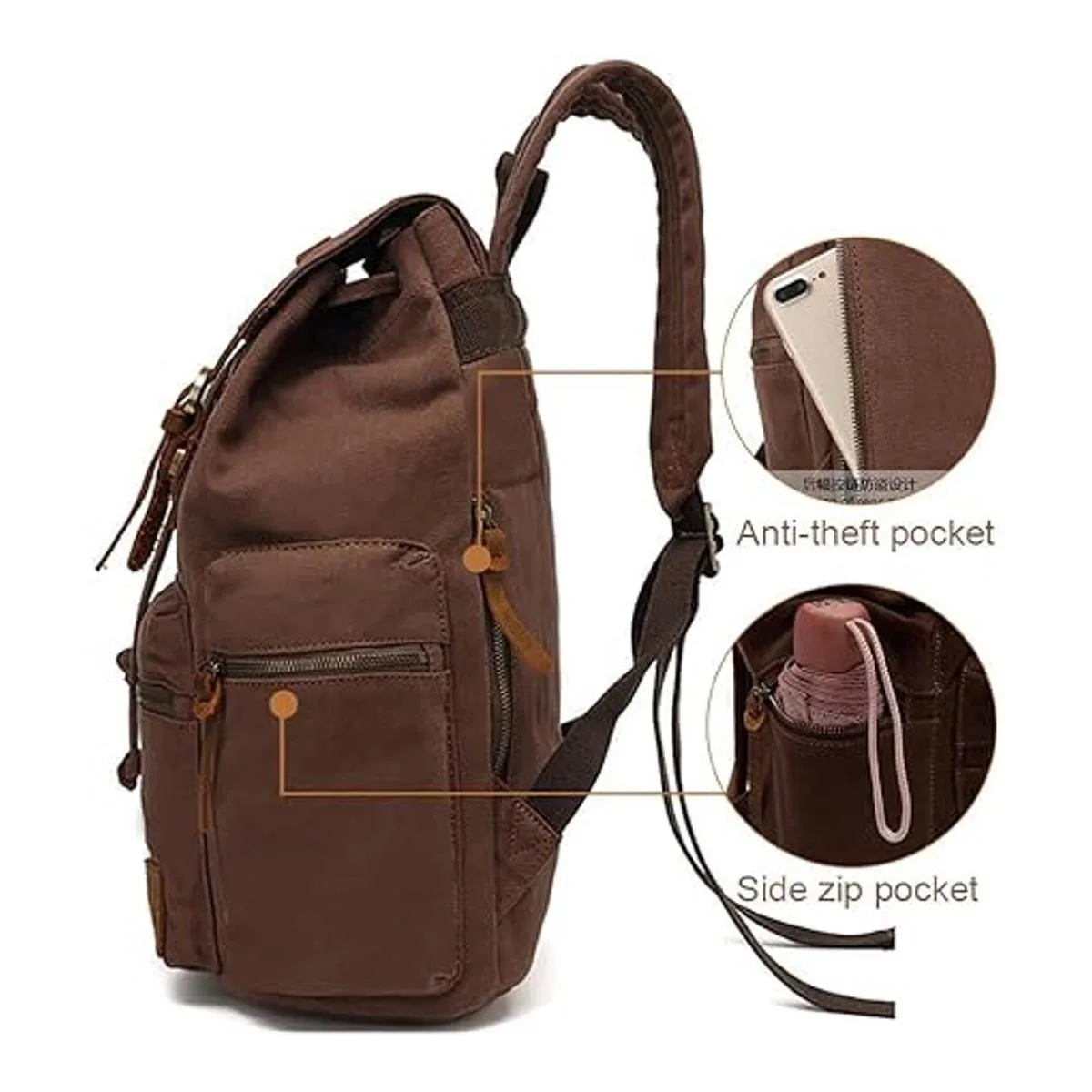 AUGUR Mochila de lona de cuero vintage grande para laptop, mochila de senderismo, Coffee, L, Mochilas tipo mochila