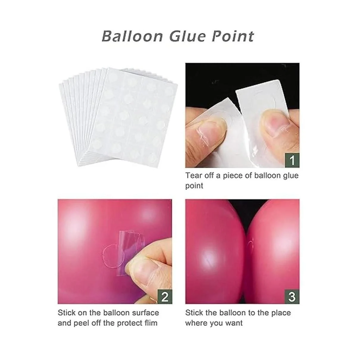 Accesorios útiles: incluye 200 puntos de pegamento para globos y 36 anillos de goma. Los puntos de pegamento ayudan a pegar los globos juntos en su lugar. Súper pegajoso e invisible. Fácil de quitar sin dejar rastro. Los anillos de goma se aplican para revestir en la madera elevada en la junta para estabilizar la caja de medición de globos