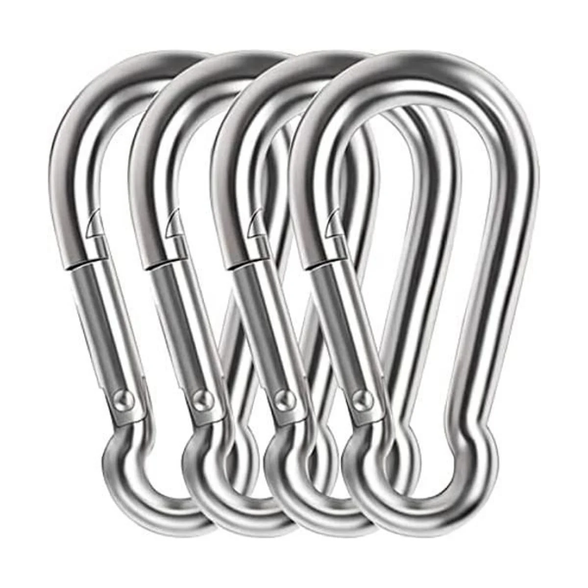 Calidad premium Nuestro mosquetón está hecho de acero inoxidable 304 de alta calidad. Tienen una superficie lisa. El acero inoxidable 304 no solo protege contra la corrosión, sino que también es muy resistente.