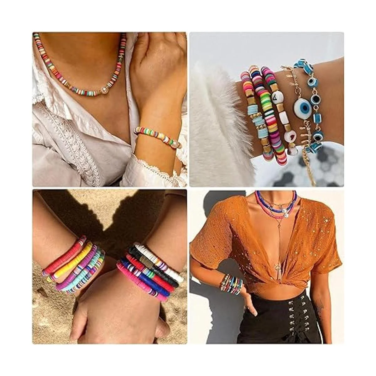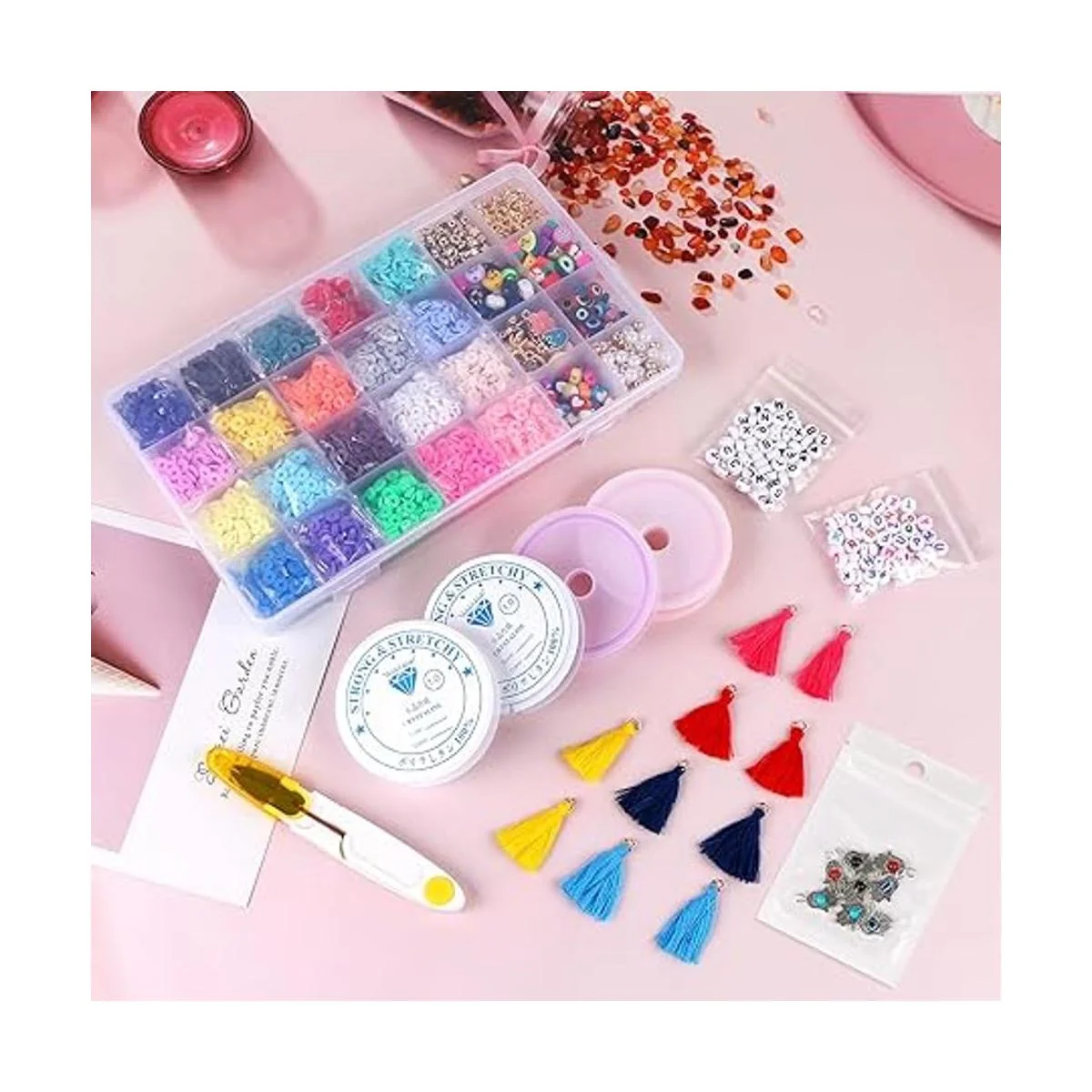 Disfruta de la fabricación de joyas DIY: alrededor de 4000 cuentas espaciadoras de arcilla polimérica coloridas con kit de dijes para colgantes, cada pulsera necesita alrededor de 100 140 cuentas de arcilla, por lo que puedes crear 29 40 pulseras o collares con nuestro paquete. Puedes utilizarlas para hacer tu pulsera única y hermosa, pendientes, collar, como un regalo especial para tu familia, amigos y personas que amas para cumpleaños, día de San Valentín, día de Navidad, día de Acción de gracias.