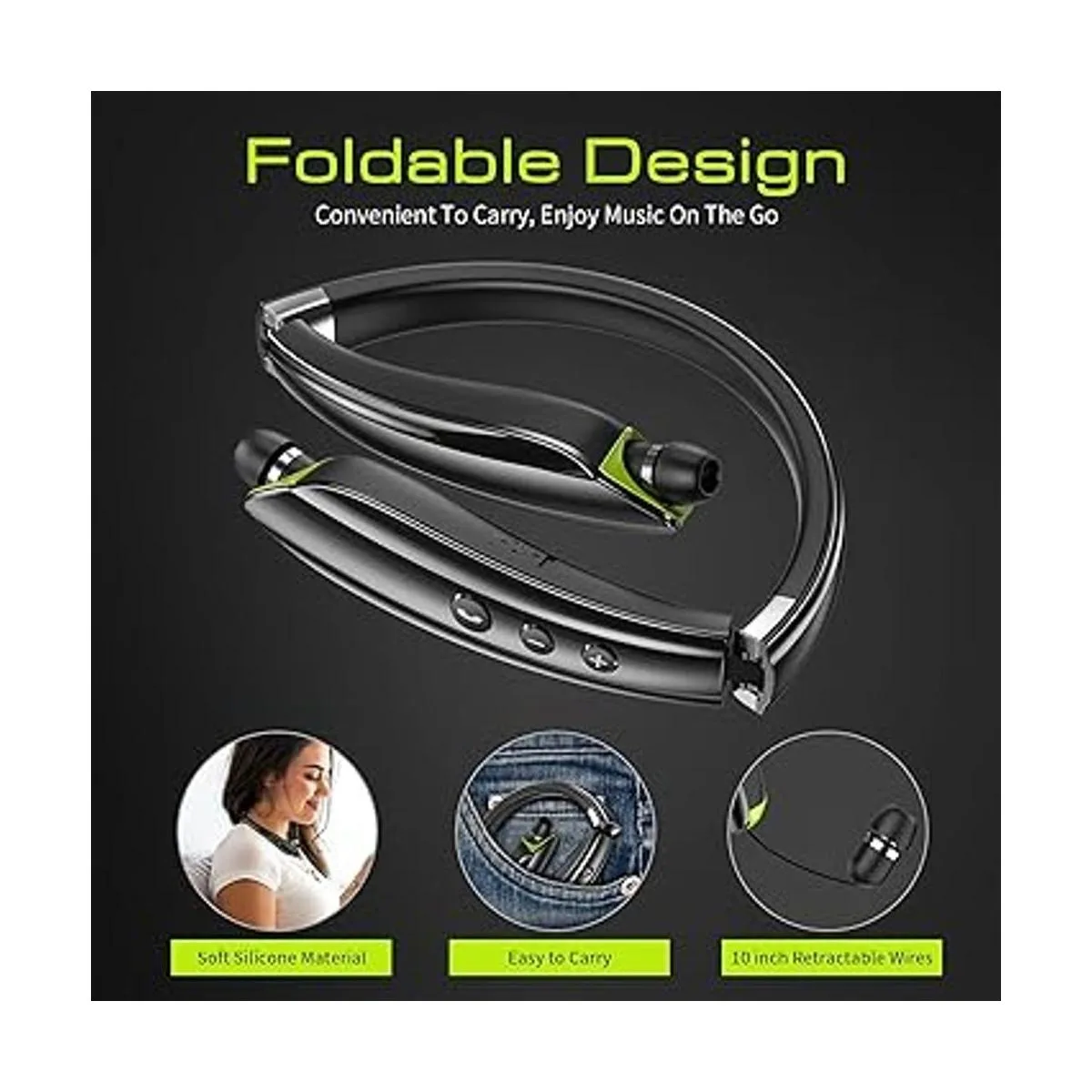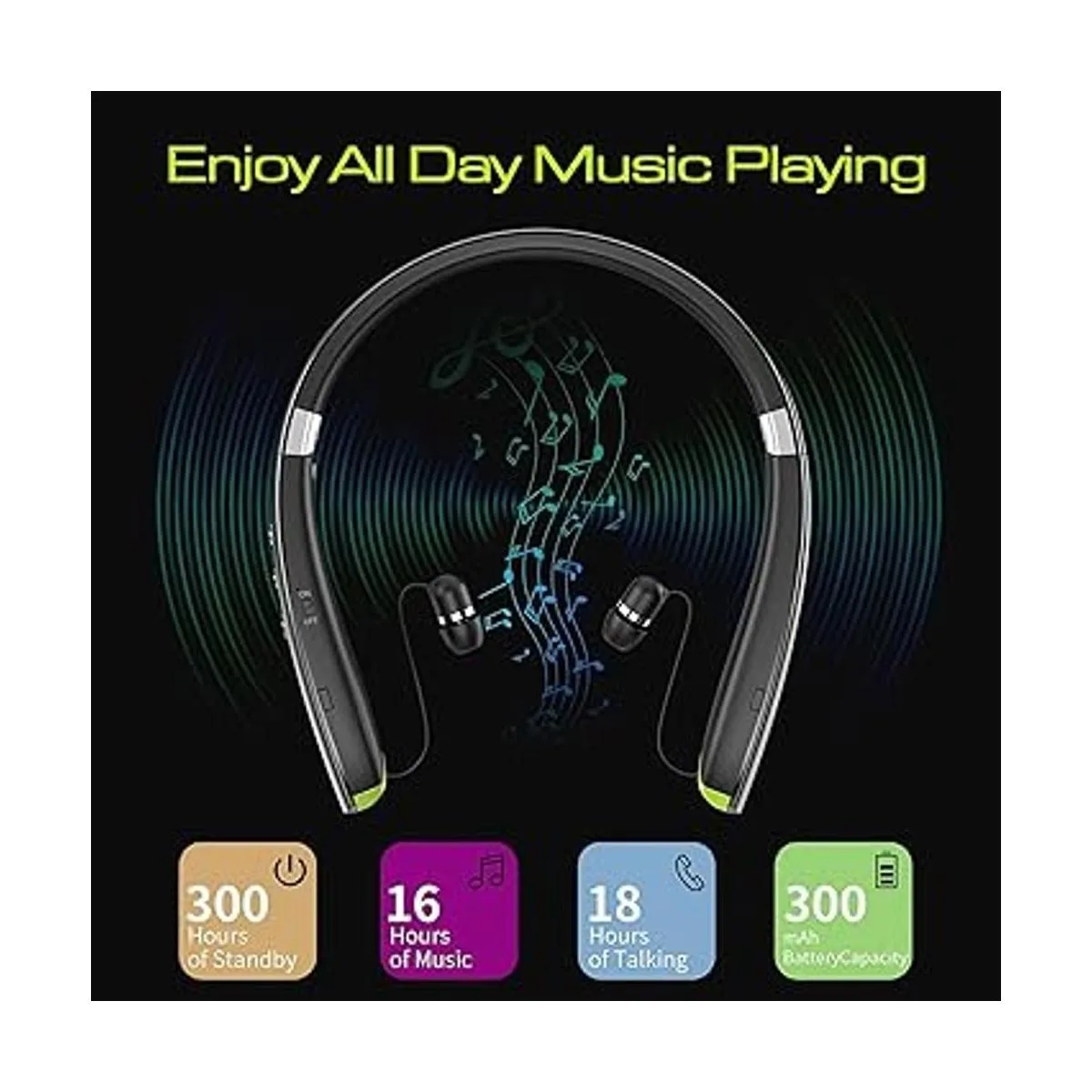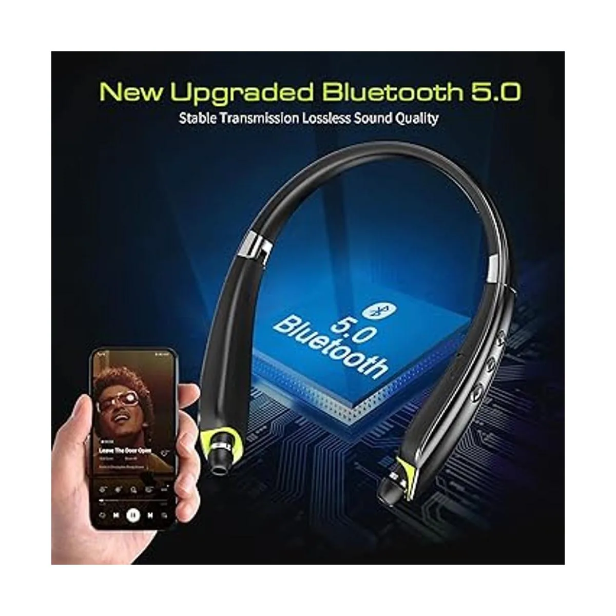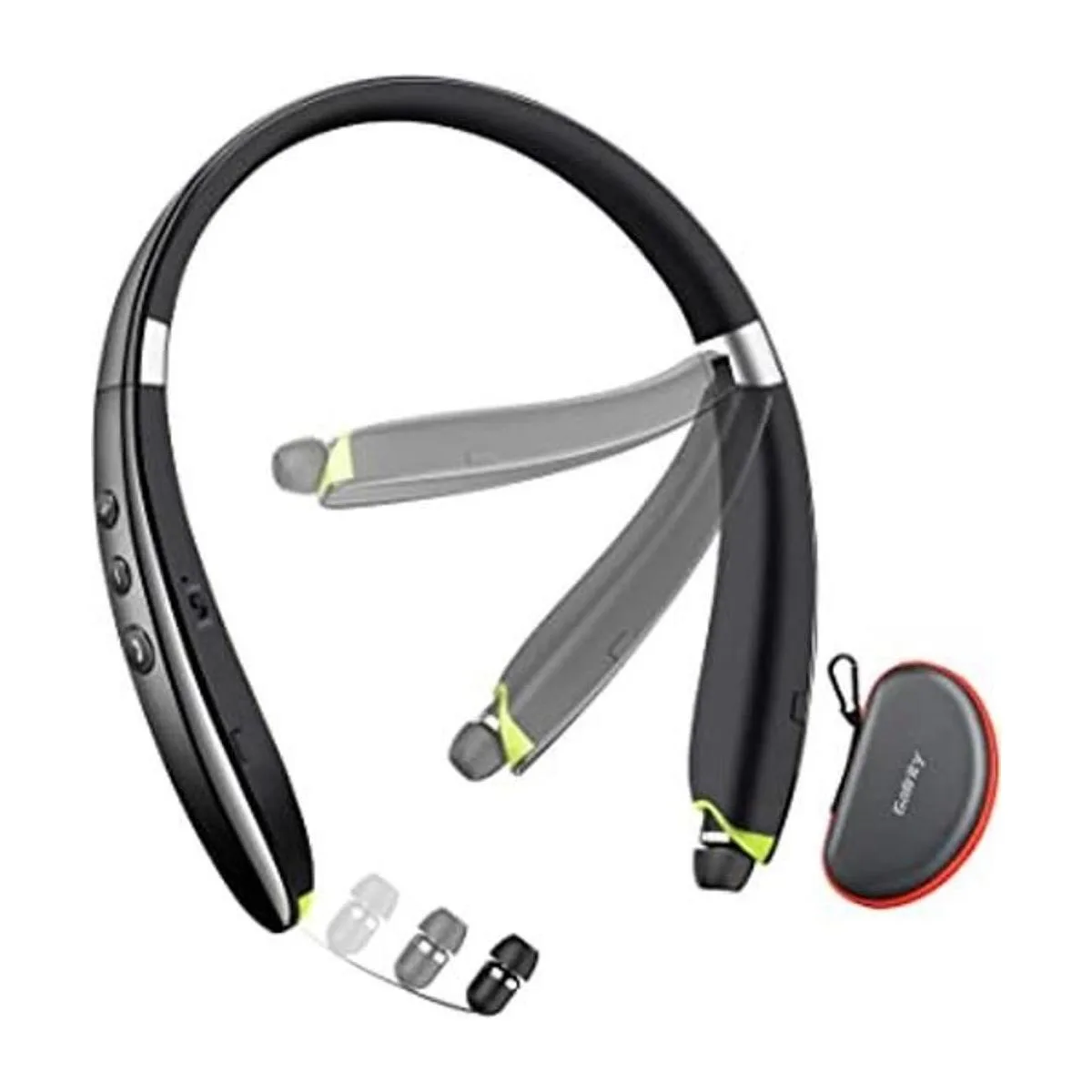 Auriculares Bluetooth, banda para el cuello actualizada 2022 con auriculares retráctiles, auriculares estéreo con cancelación de ruido con micrófono, auriculares inalámbricos plegables para oficina deportiva con estuche de transporte