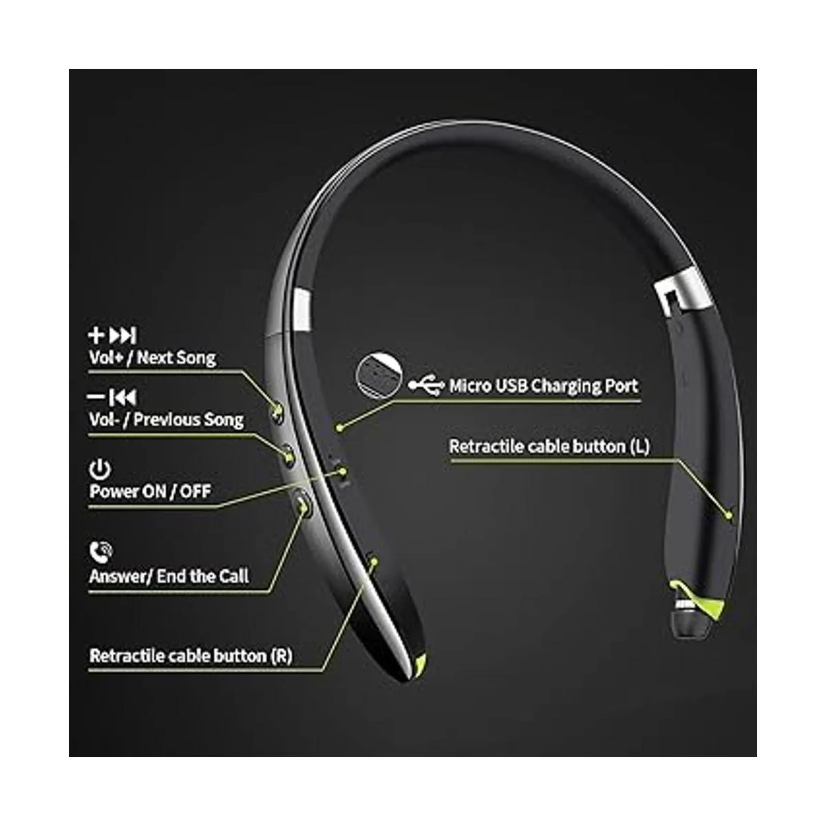Banda para el cuello y diseño retráctil : los auriculares Bluetooth con diseño ergonómico de banda para el cuello se adaptan a tu cuello y son cómodos de llevar. El diseño único de los auriculares retráctiles te permite tirar del cable a la longitud deseada y retraerlo cuando no lo utilices. Además, los auriculares Bluetooth diseñados con silicona amarilla vibrante reducen eficazmente el sonido de colisiones al retraer los auriculares.