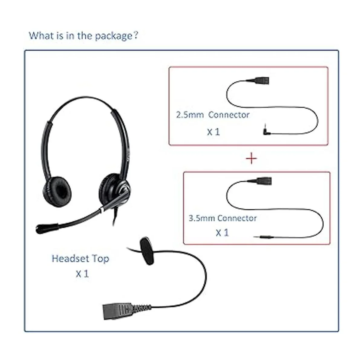 Auriculares de 0.098 in con micrófono de cancelación de ruido para teléfono Panasonic, incluye conector de 0.138 in para smartphone PC portátil, oficina CallCenter auriculares para Cisco ATT Vtech Undiden teléfono DECT inalámbrico