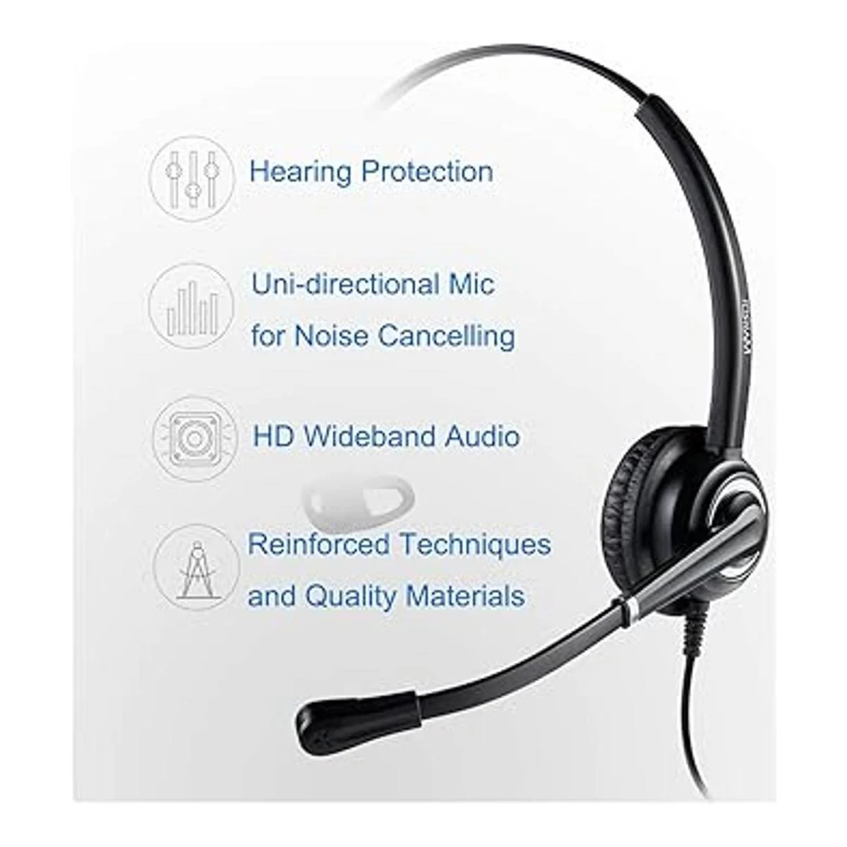 Sonido de alta calidad: auriculares de teléfono con micrófono con cancelación de ruido y sonido de audio HD que garantizan una comunicación fácil y clara para centros de llamadas, oficinas y teléfonos domésticos incluso en entornos ruidosos. La solución de audio de banda ancha ofrece una audición natural y clara. Protección auditiva antichoque acústico.