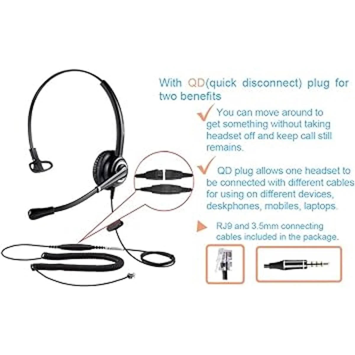 Gran durabilidad: peso ligero y diseño fuerte, diadema de acero inoxidable, altavoz y micrófono de calidad superior, piezas de plástico fiables. Cordón reforzado construido con Kevlar para soportar entornos exigentes y proteger contra ruedas de silla de oficina, objetos afilados para uso diario intensivo. Compite con Plantronic y Jabra caros por un gran valor.