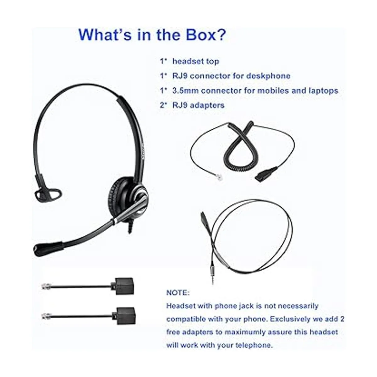 Un auricular para múltiples dispositivos. Estos auriculares de oficina vienen con conectores RJ9 y 0.138 in tanto para teléfonos de escritorio fijos, teléfonos celulares como portátiles de PC. Con conector de 0.138 in para iPhone, Samsung, PC, portátil y la mayoría de otros Android. Con conector RJ9 funciona para Cisco IP Phone 7931G 7940 7940G 7941 7941G 7942 7942G 7945 7945G 7960 7960G 7961 7961G 7962 7962G 7965 65G 79 70 7970G 7971 7971G 7975 7975G 6921 6941 6945 6961 7821 7841 7861 8811 8841 8961 9951 y más.