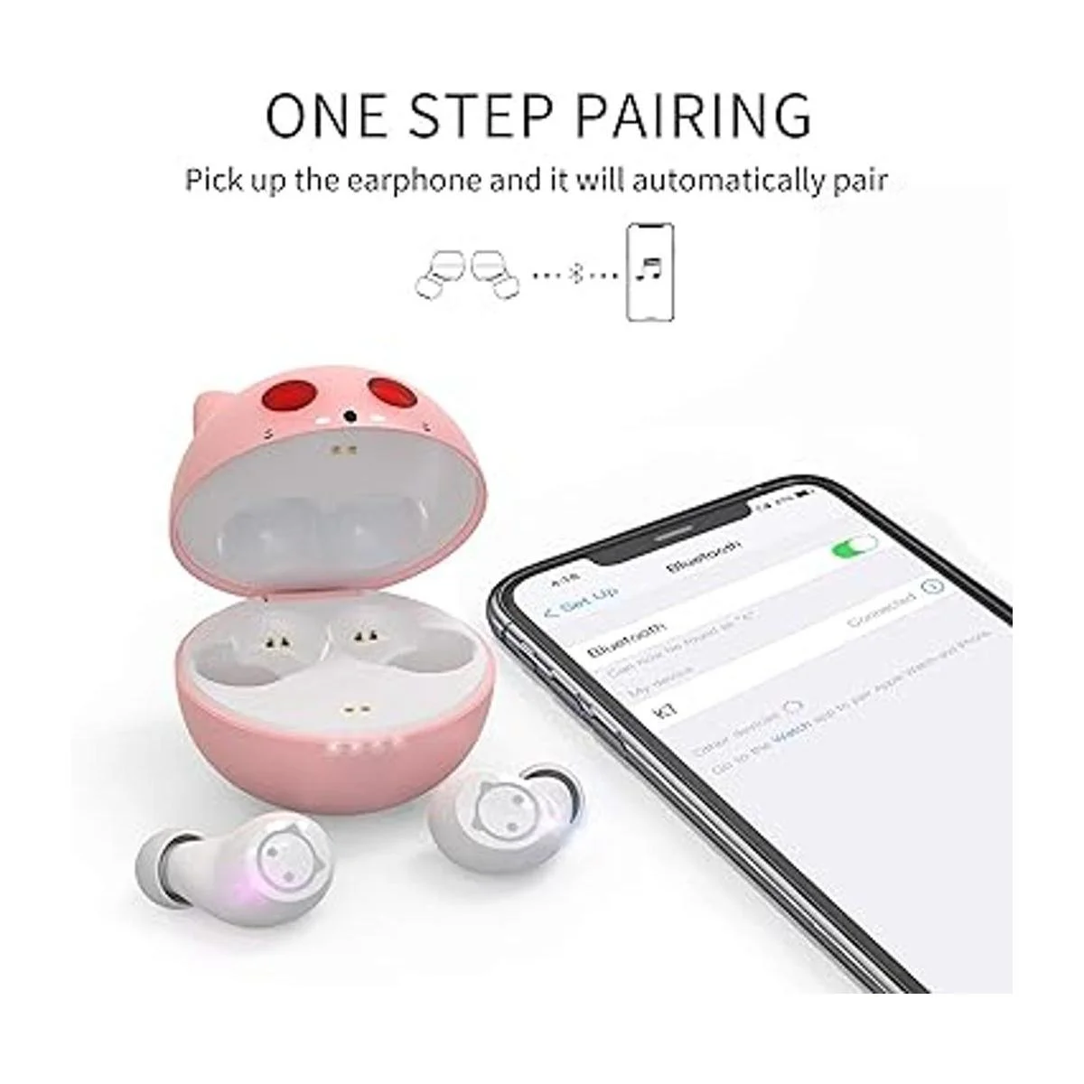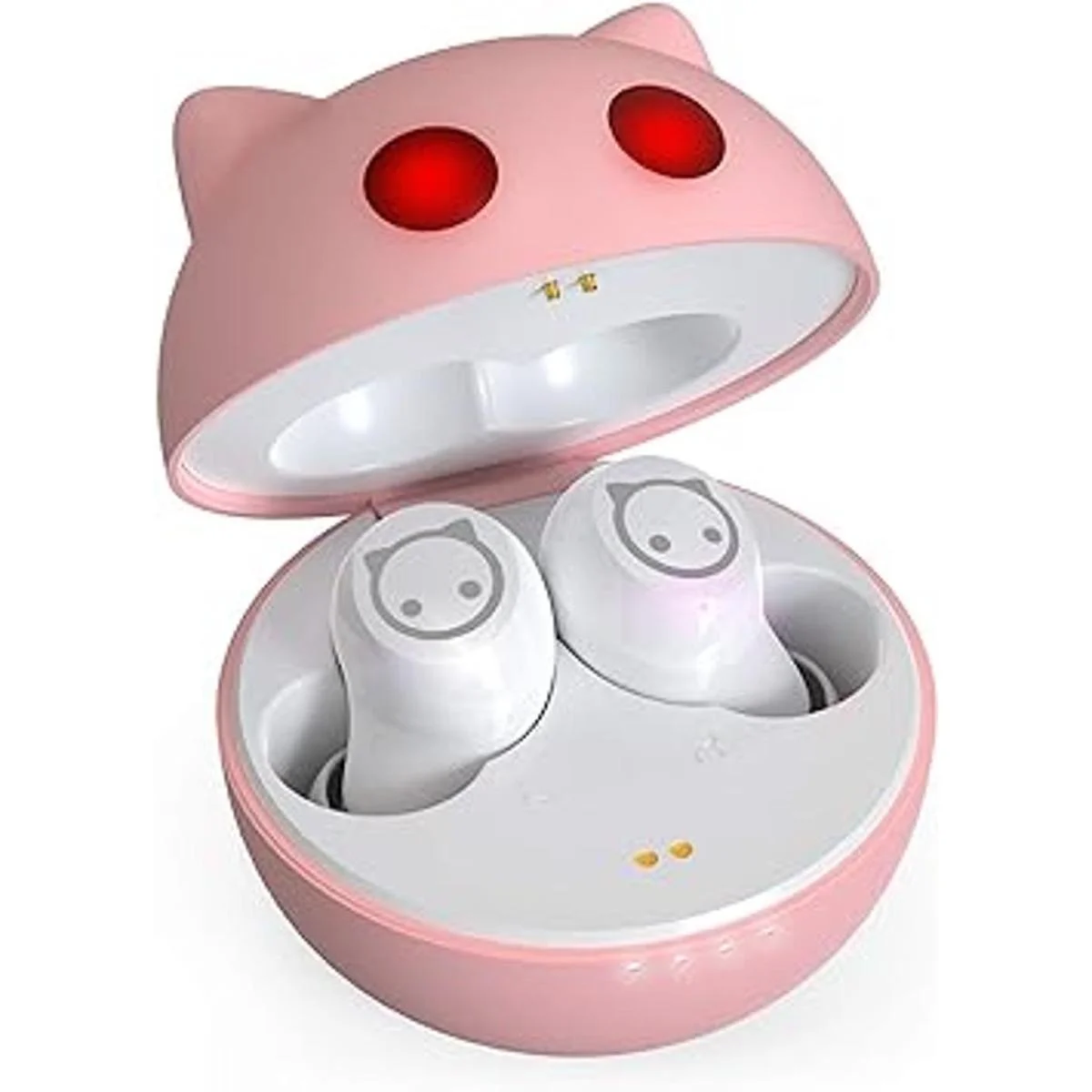Auriculares inalámbricos rosados, auriculares Bluetooth con micrófono cómodo y ligero con cancelación de ruido, estéreo envolvente 3D, mini funda de carga portátil de larga duración auriculares SML