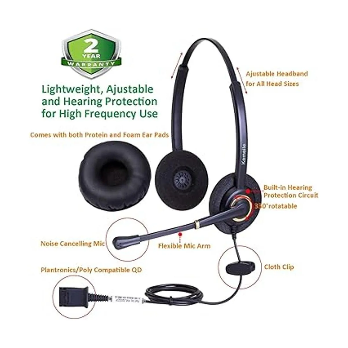 Excelente durabilidad y garantía de por vida: auriculares de escritorio Rj9 con estructura de componentes confiables, diseñados profesionalmente para el entorno de centro de llamadas más duro. Desde la materia prima hasta cada componente, controlamos estrictamente la calidad desde el origen. Estos auriculares pueden competir con auriculares Jabra o Plantronics o Sennheiser para un uso de alta frecuencia. Garantía del fabricante de por vida y 45 días de garantía de devolución de dinero. Cualquier problema, por favor ponte en contacto con nosotros libremente, nuestro equipo de servicio al cliente te resolverá lo antes posible.
